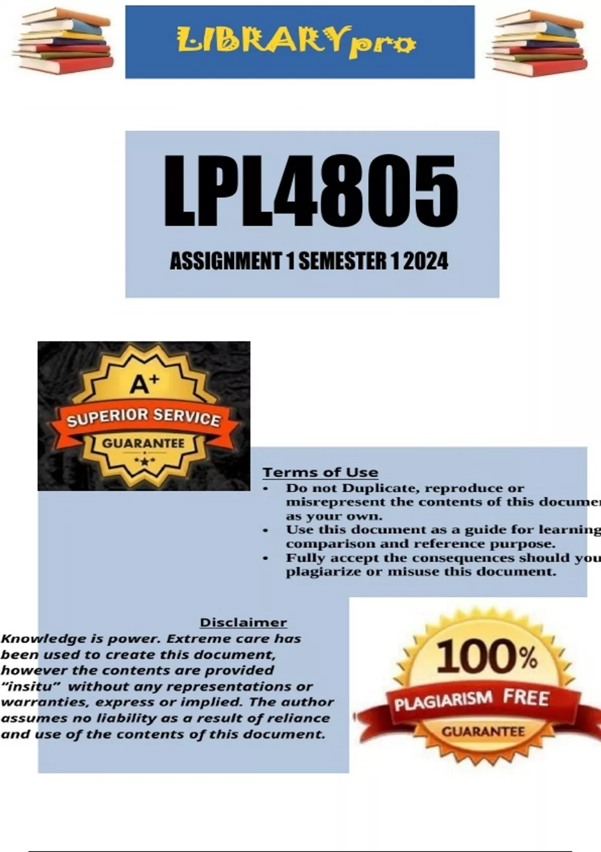 LPL4805 Assignment 1 (COMPLETE ANSWERS) Semester 1 2024