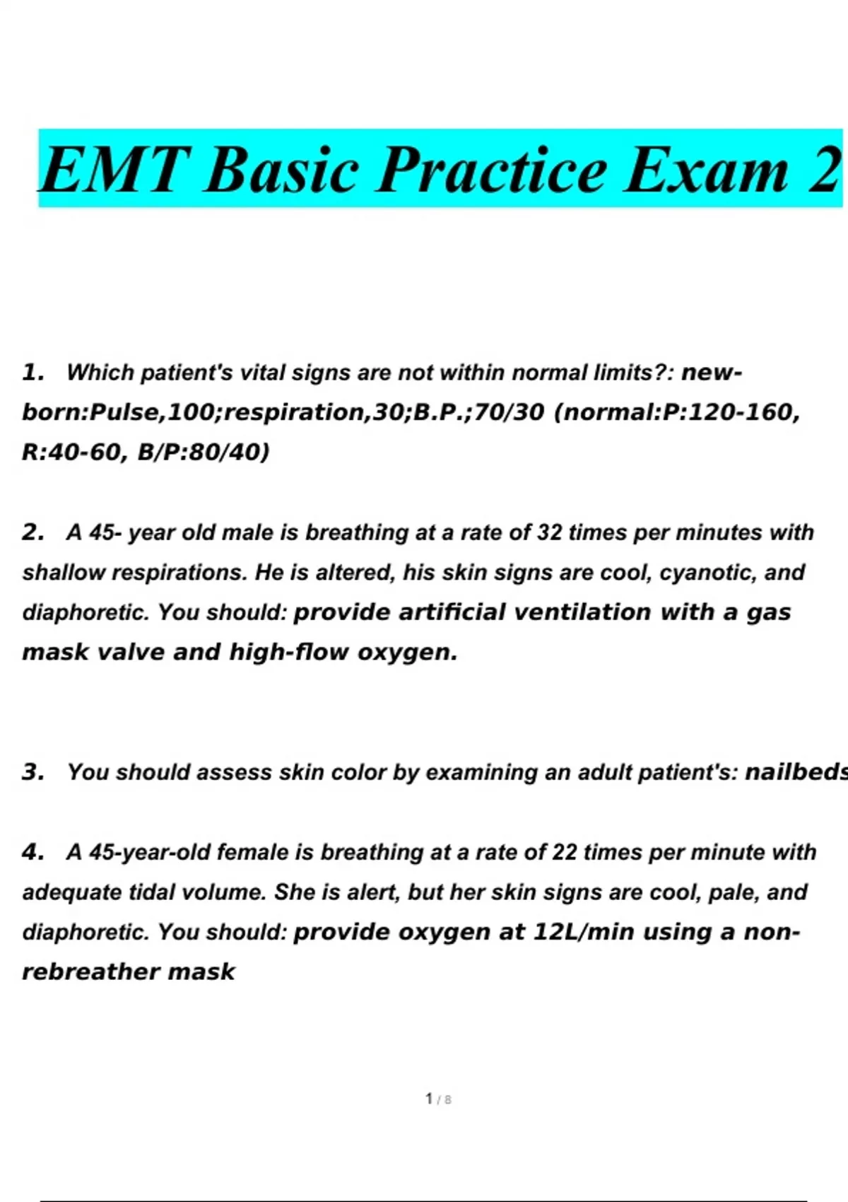 EMT Basic Practice Exam 2 Questions and Answers | VERIFIED COMPLETLY