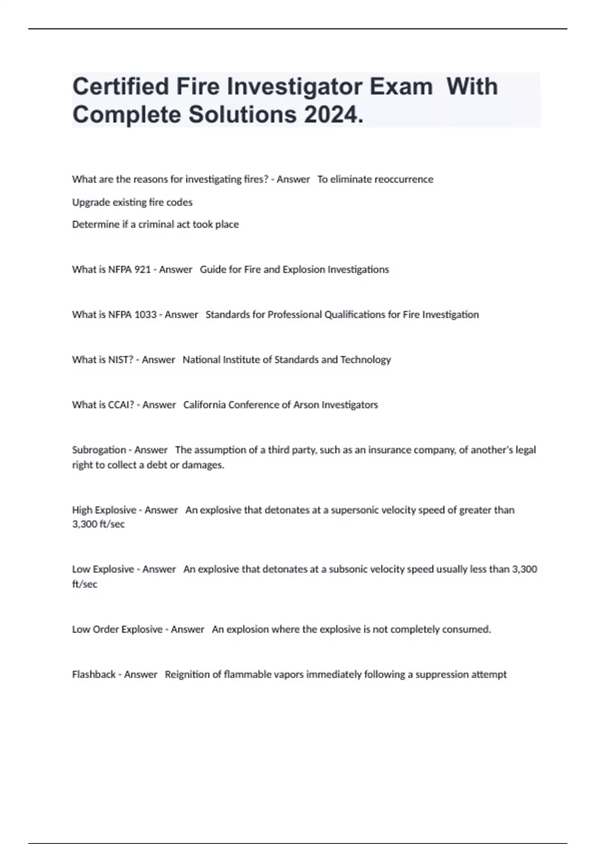 Certified Fire Investigator Exam With Complete Solutions 2024.