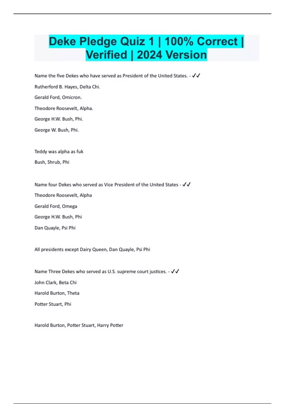 Deke Pledge Quiz 1 | 100% Correct | Verified | 2024 Version