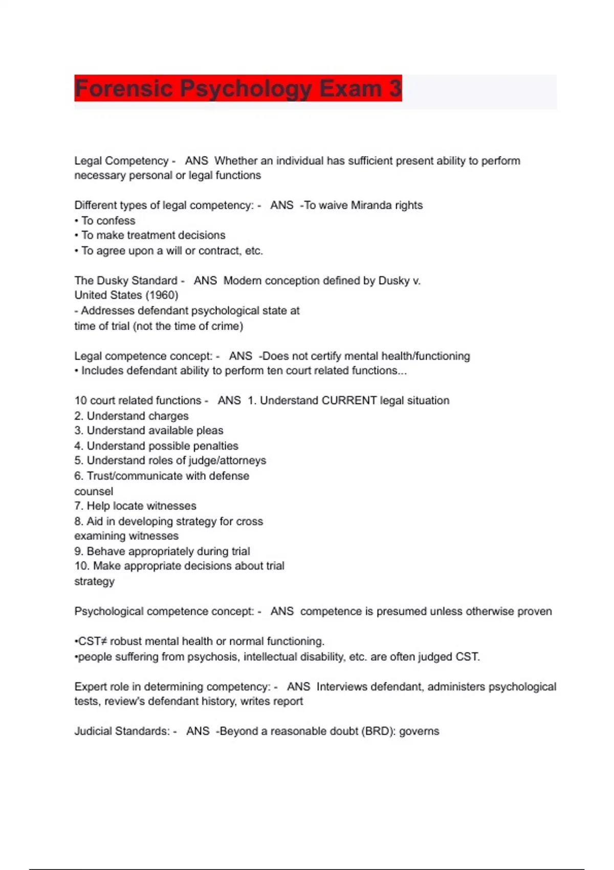 Forensic Psychology Exam 3 2024