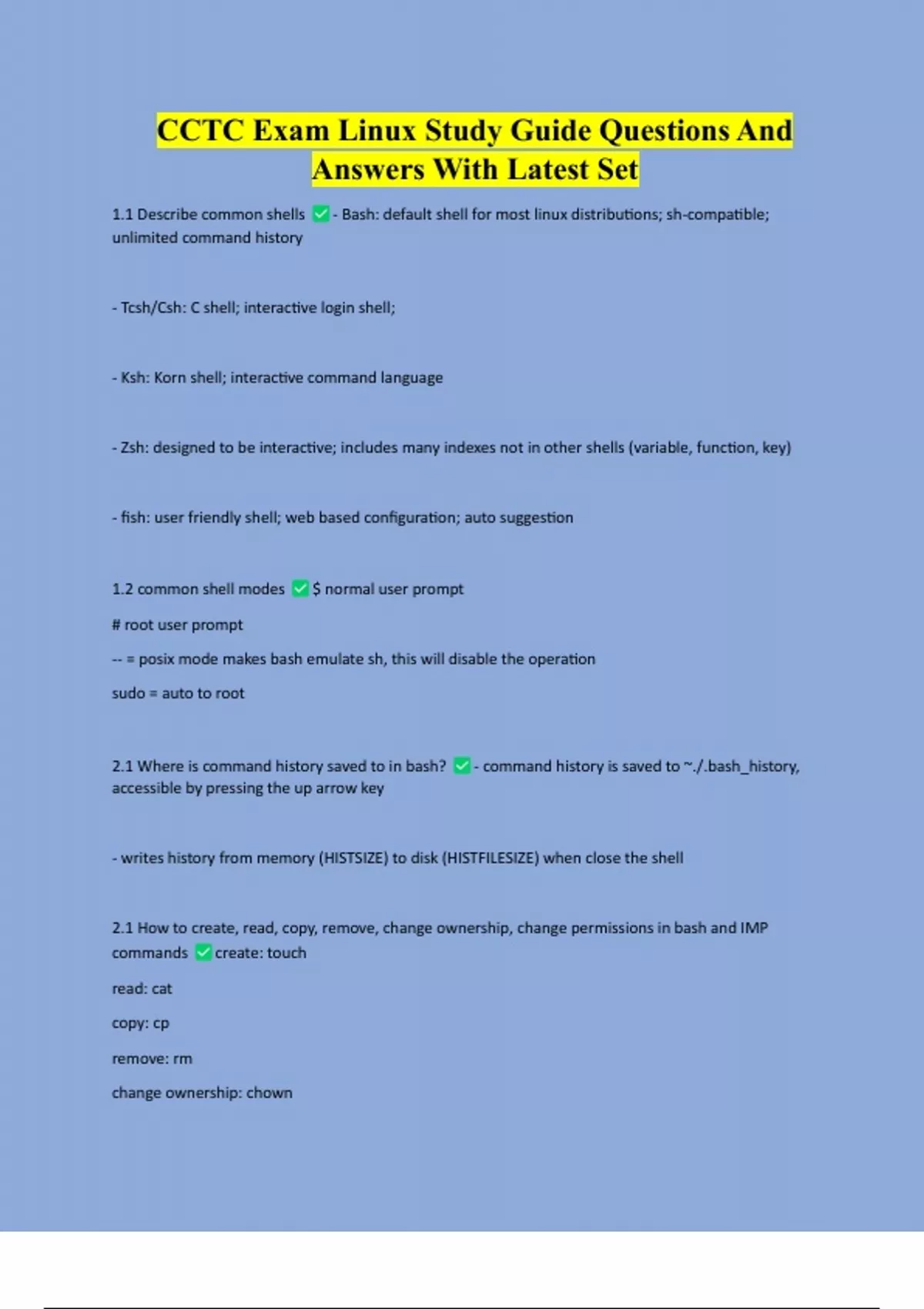 CCTC Exam Linux Study Guide Questions And Answers With Latest Set