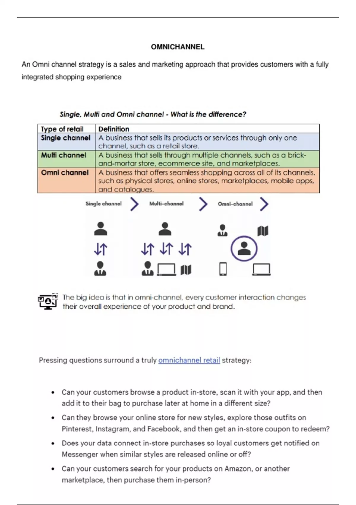 piece (content piece) on omnichannel for the retailer