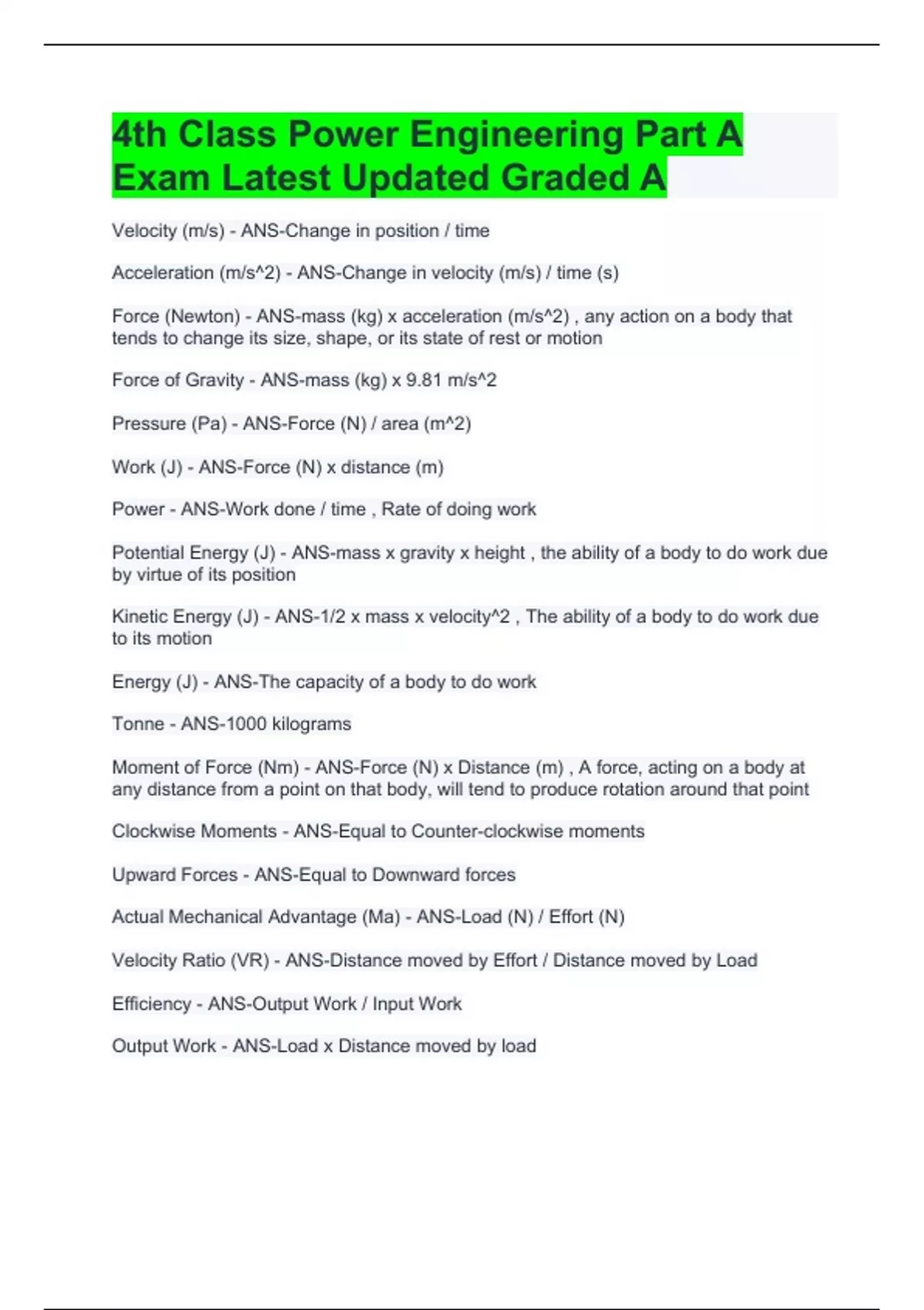 4th Class Power Engineering Part A Exam Latest Updated Graded A