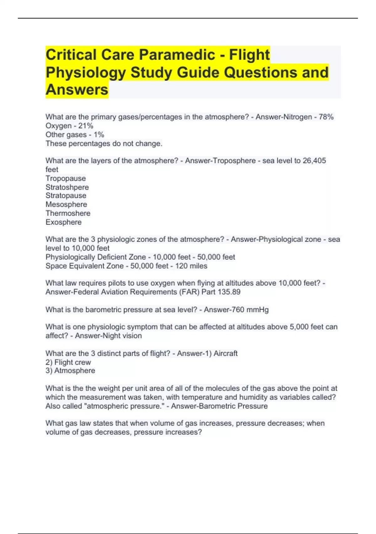 Critical Care Paramedic - Flight Physiology Study Guide Questions and Answers