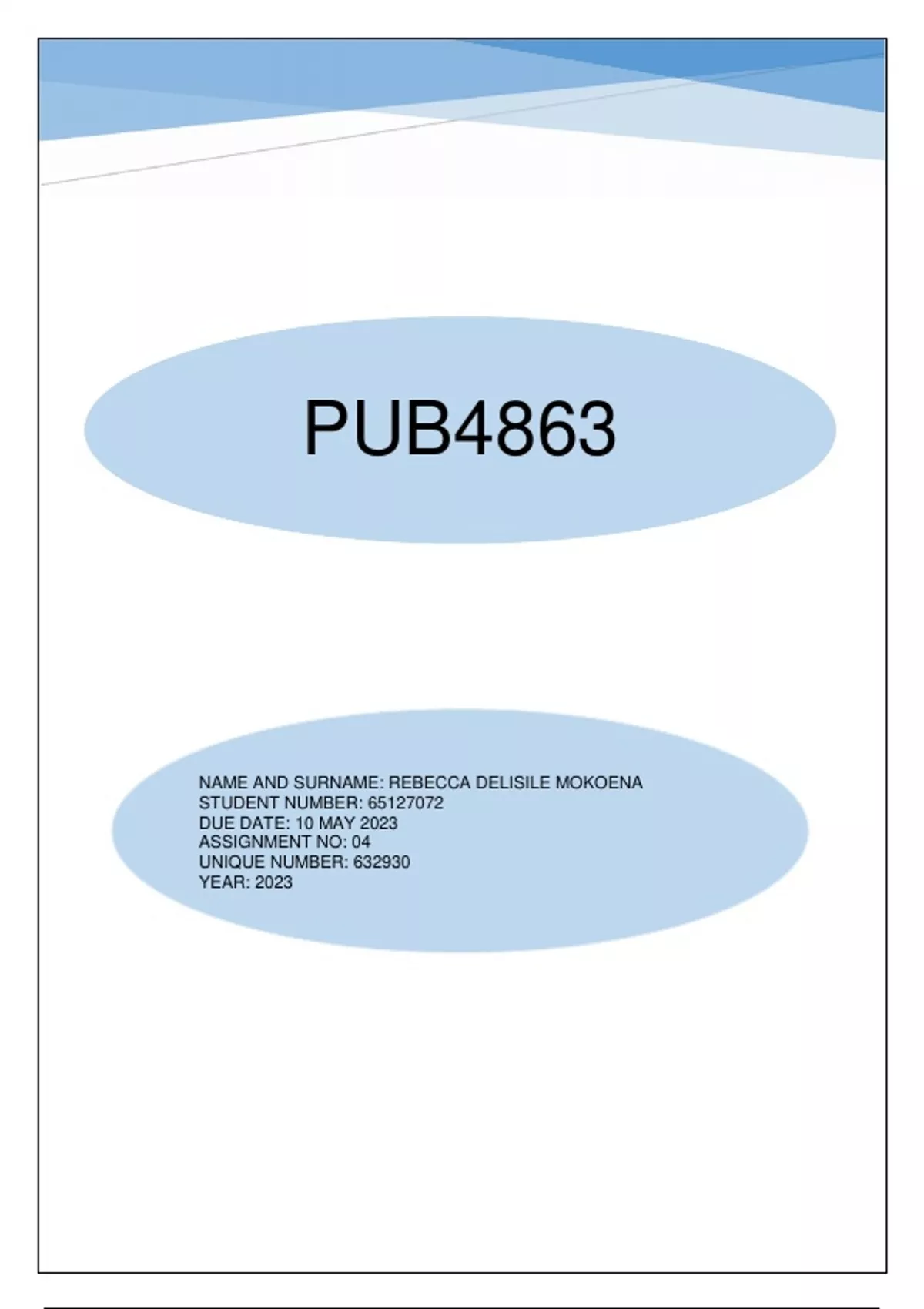 DUE DATE: 10 MAY 2023