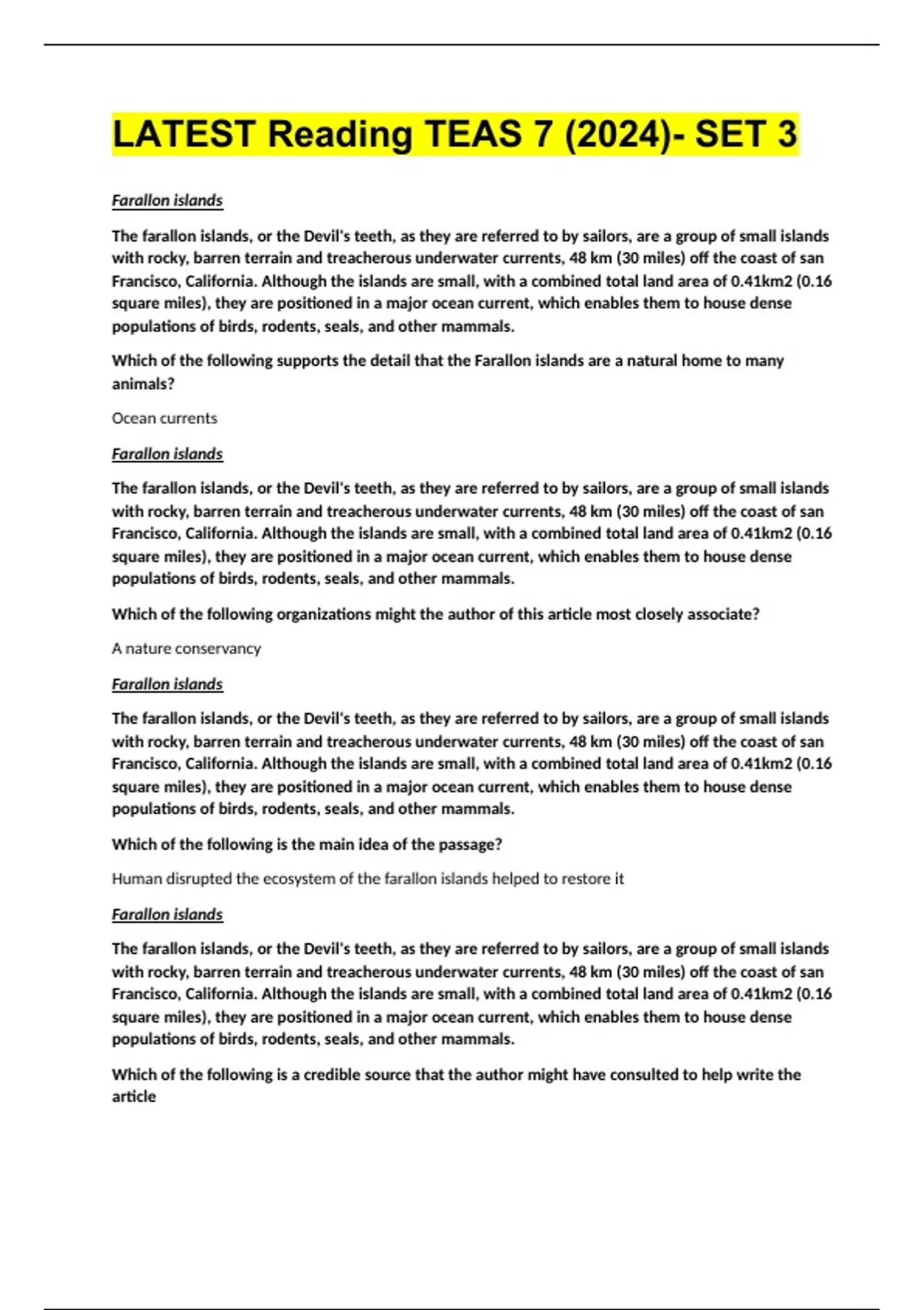 Which of the following supports the detail that the Farallon islands are a natural home to many