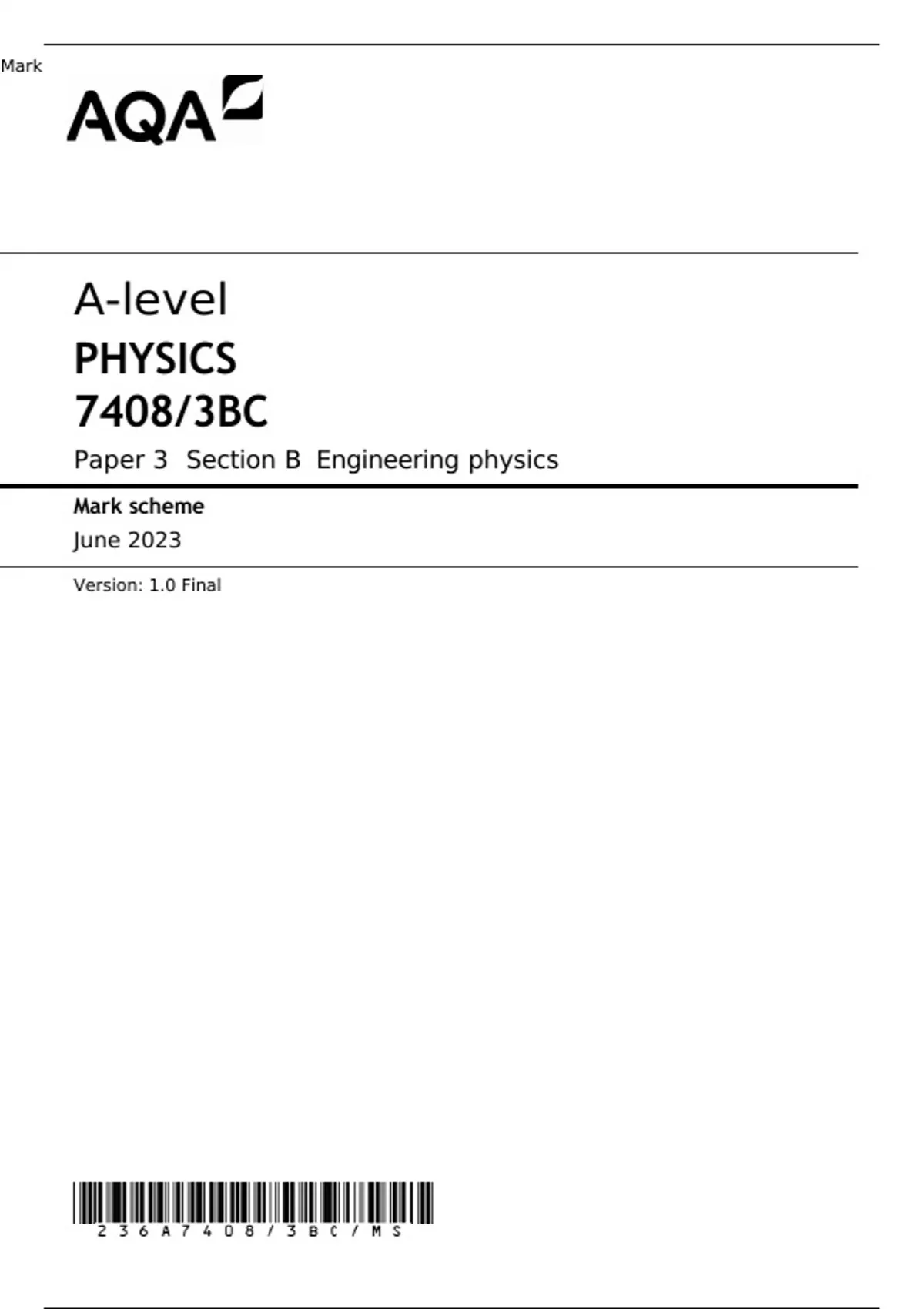 AQA A-level PHYSICS Paper 3BC Mark Scheme JUNE 2023