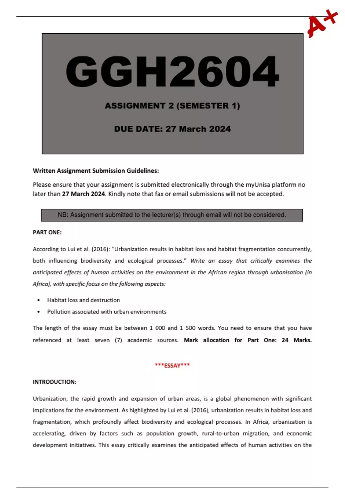 NB: Assignment submitted to the lecturer(s) through email will not be considered.