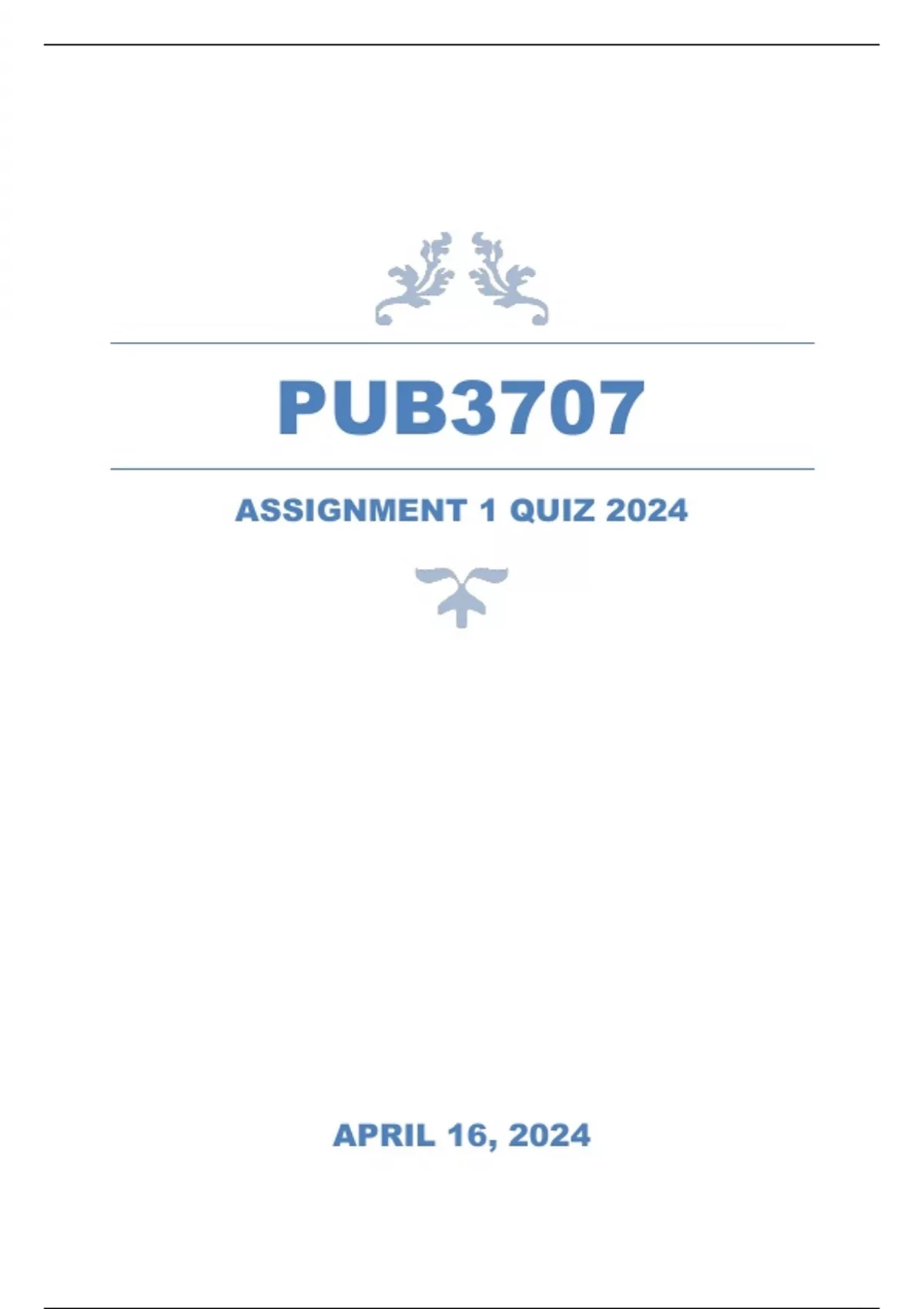 PUB3707 ASSIGNMENT 1 QUIZ 2024