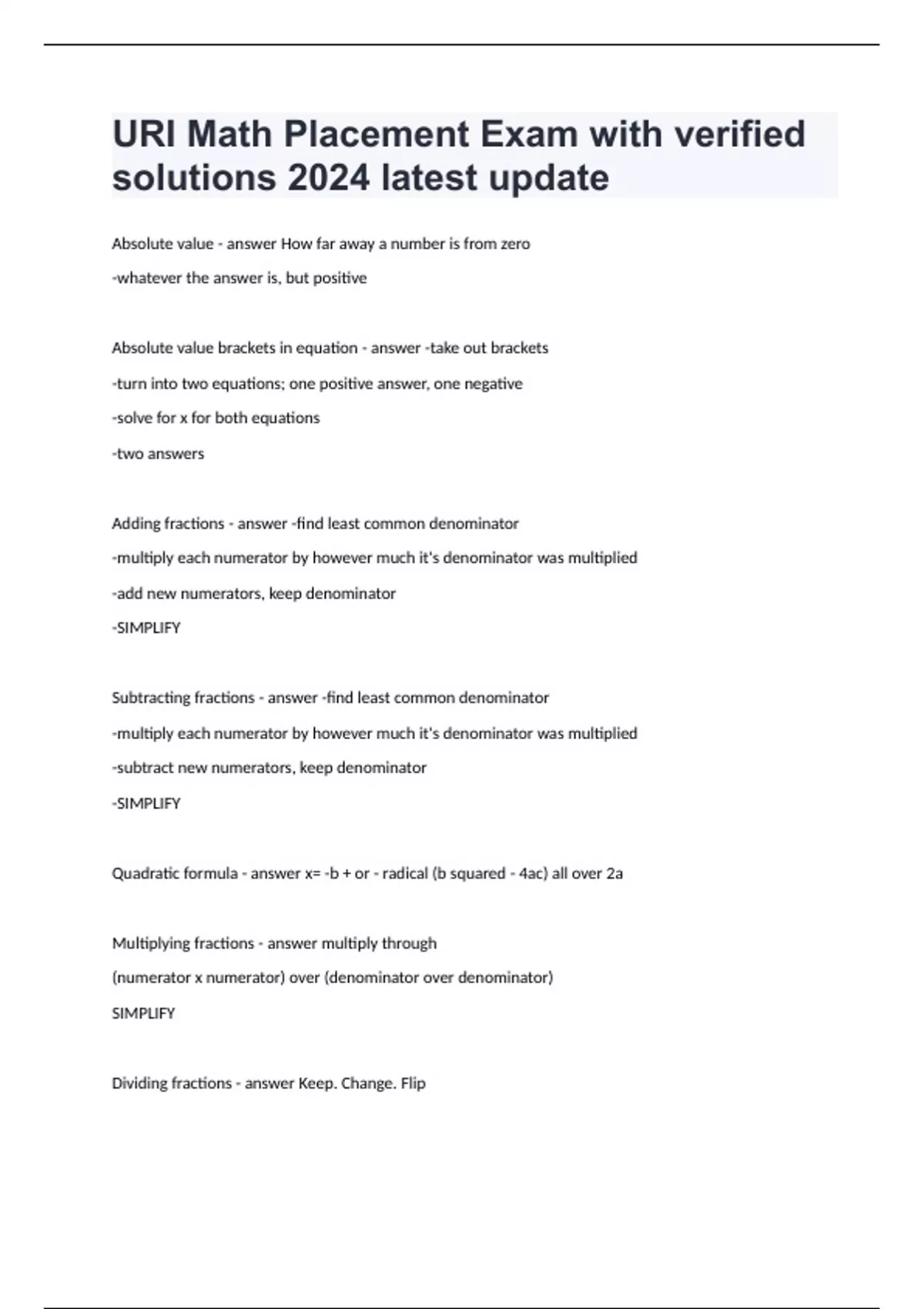 URI Math Placement Exam with verified solutions 2024 latest update.
