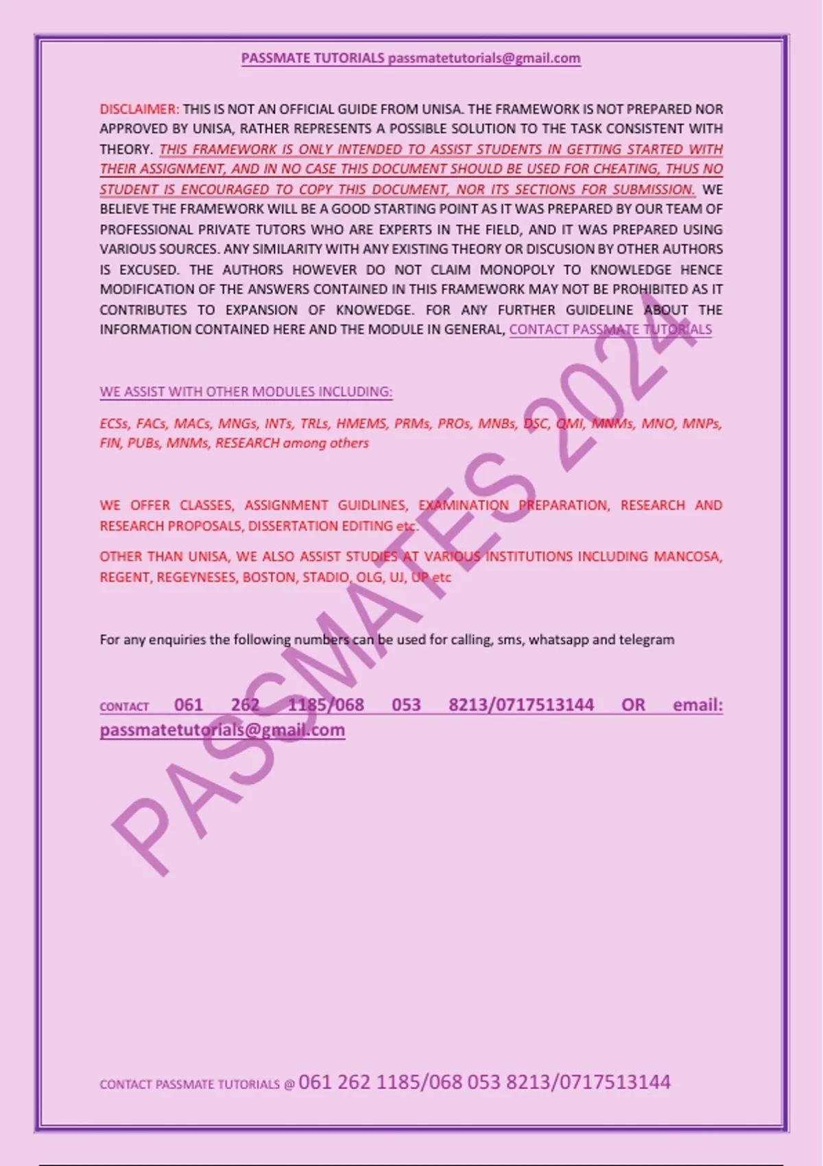 DISCLAIMER: THIS IS NOT AN OFFICIAL GUIDE FROM UNISA. THE FRAMEWORK IS NOT PREPARED NOR