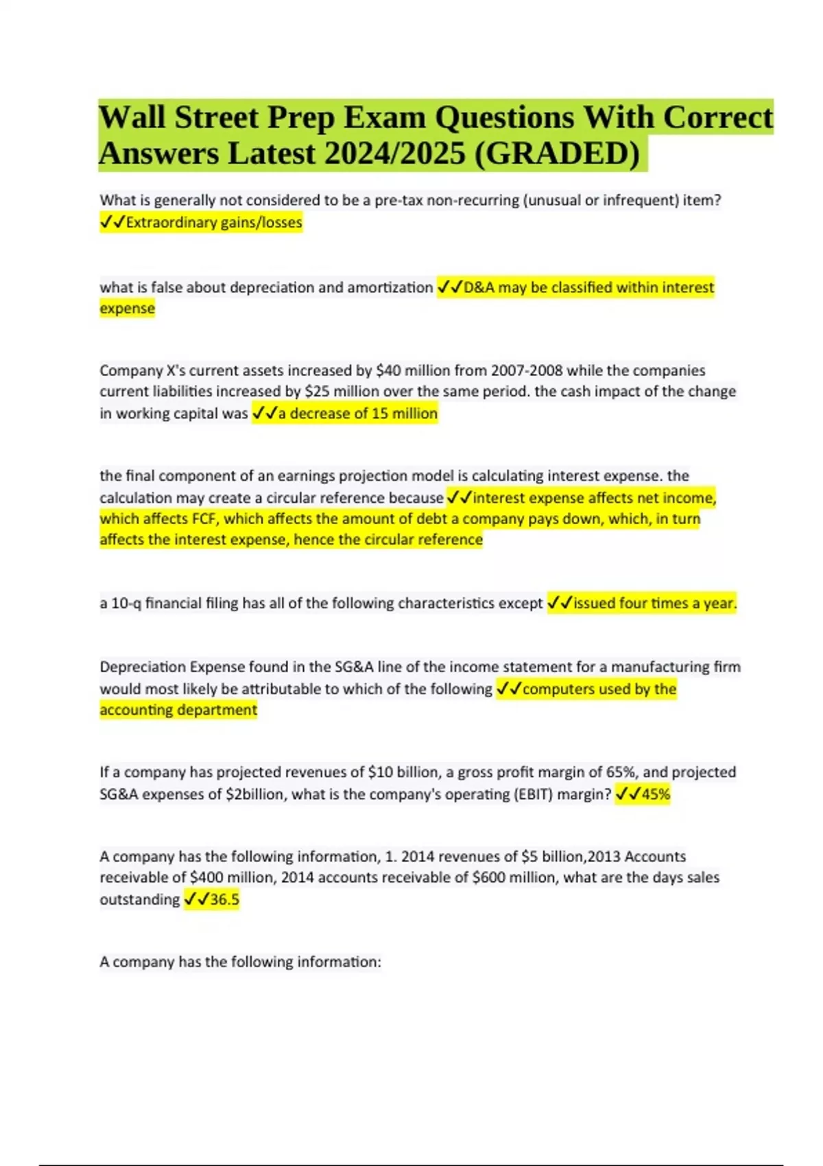 Wall Street Prep Exam Questions With 100% Correct Answers Latest 2024/2025 (GRADED A+)