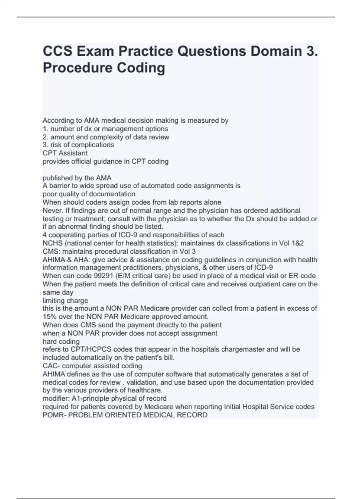 CCS Exam Practice Questions Domain 3. Procedure Coding Questions and Answers 2024