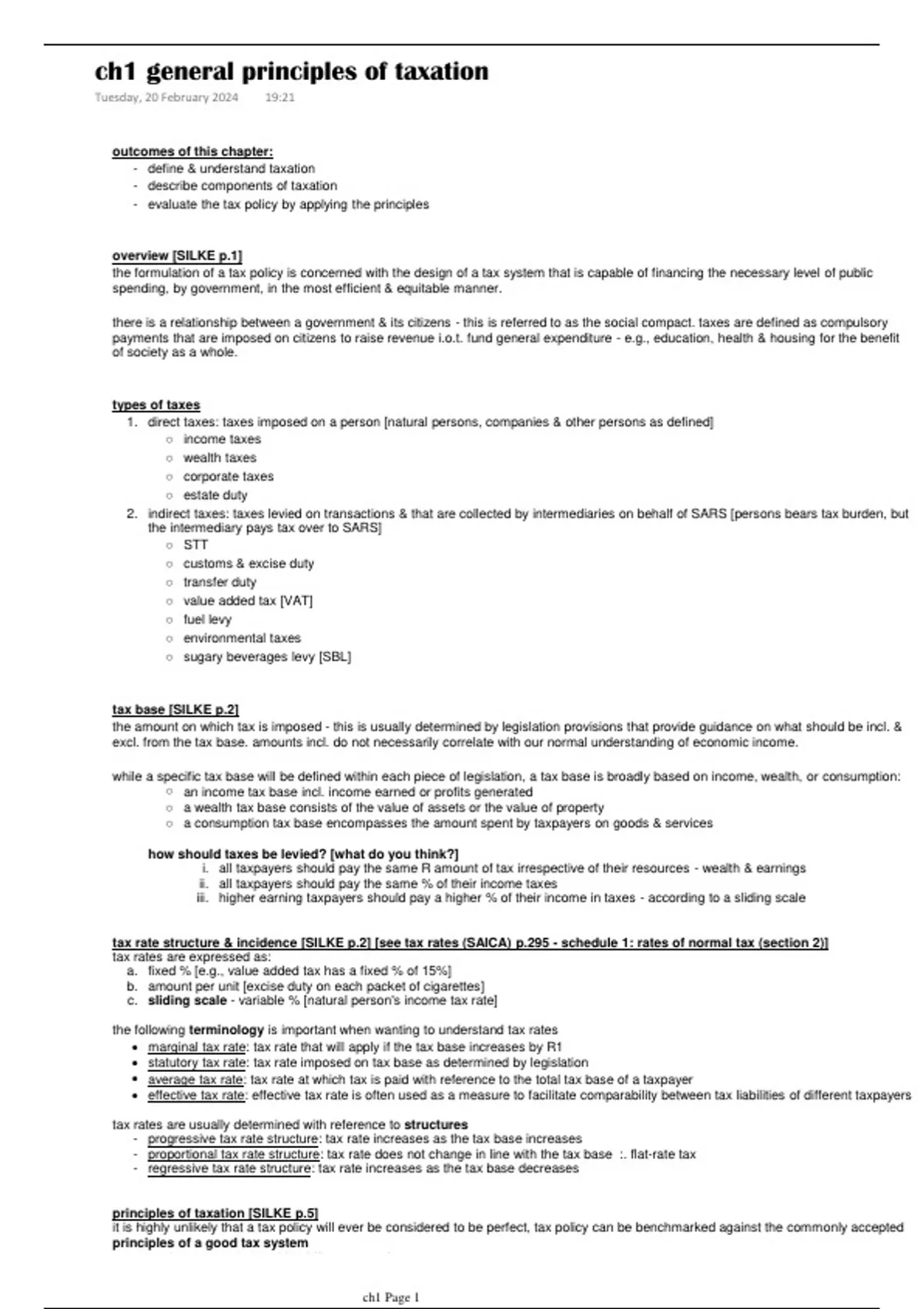 1. direct taxes: taxes imposed on a person [natural persons, companies & other persons as defined]