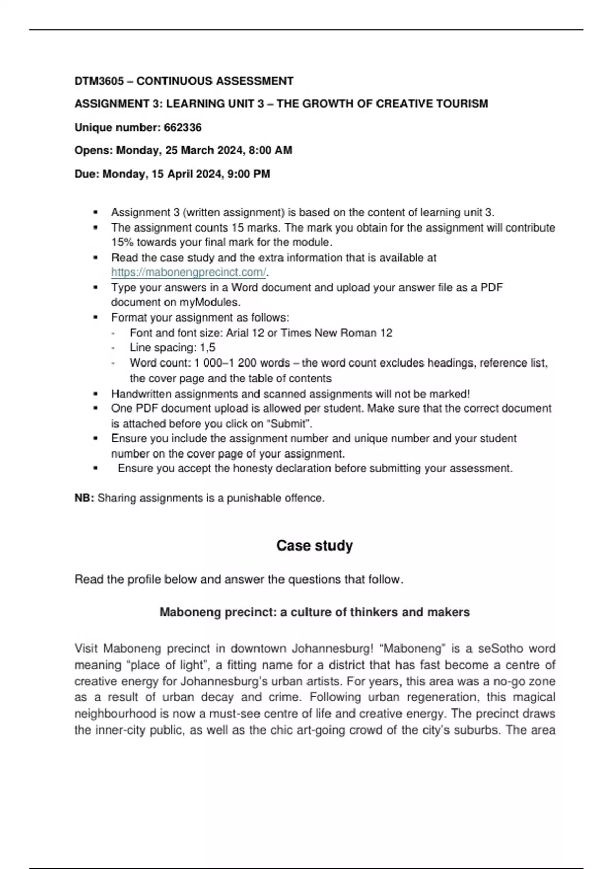 DTM3605 ASSIGNMENT 3 SEMESTER 1 2024 GUARANTEED DINSTINCTION LEARNING UNIT 3 – THE GROWTH OF CREATIVE TOURISM