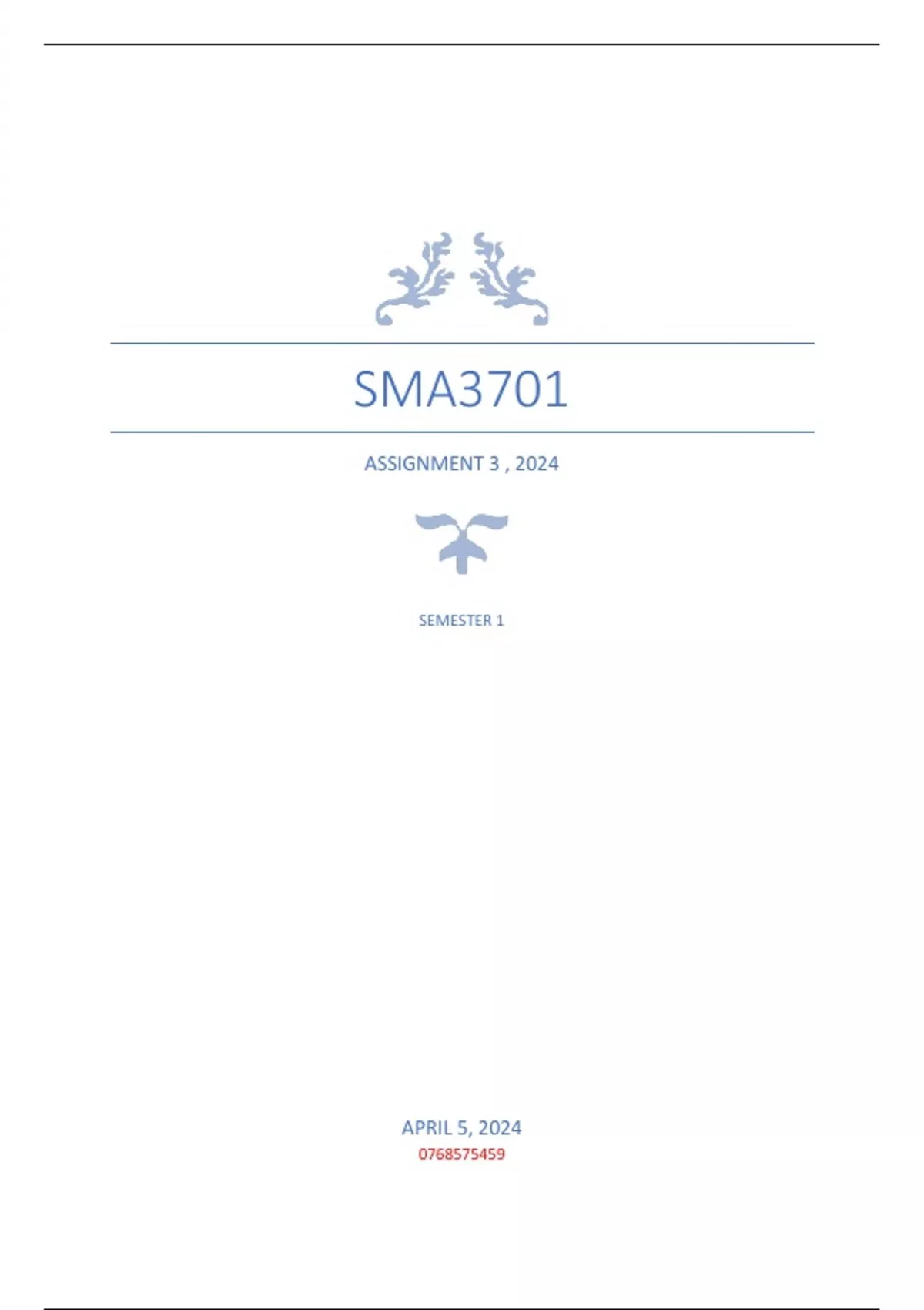 SMA3701 ASSIGNMENT 3 SEMESTER 1 QUIZ ANSWERS 2024