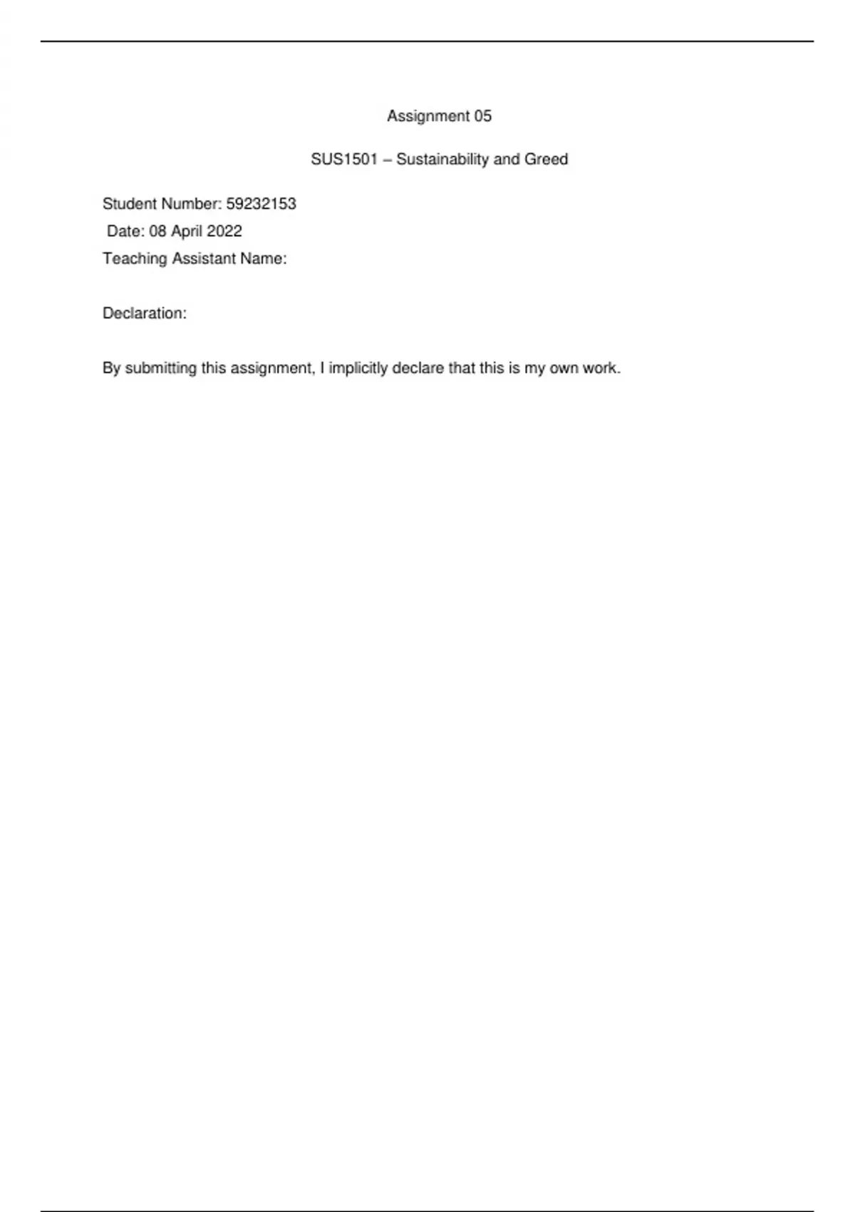 SUS1501 – Sustainability and Greed