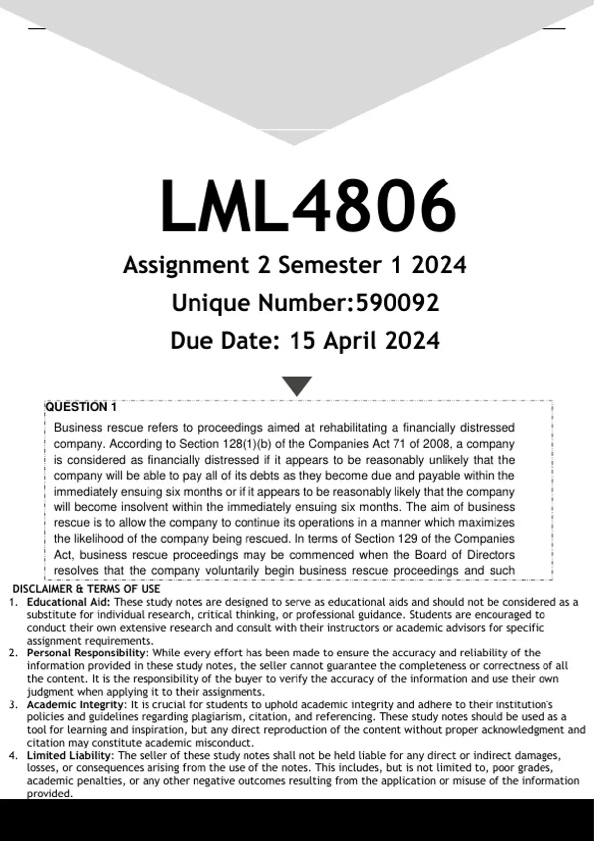 4. Limited Liability: The seller of these study notes shall not be held liable for any direct or indirect damages,