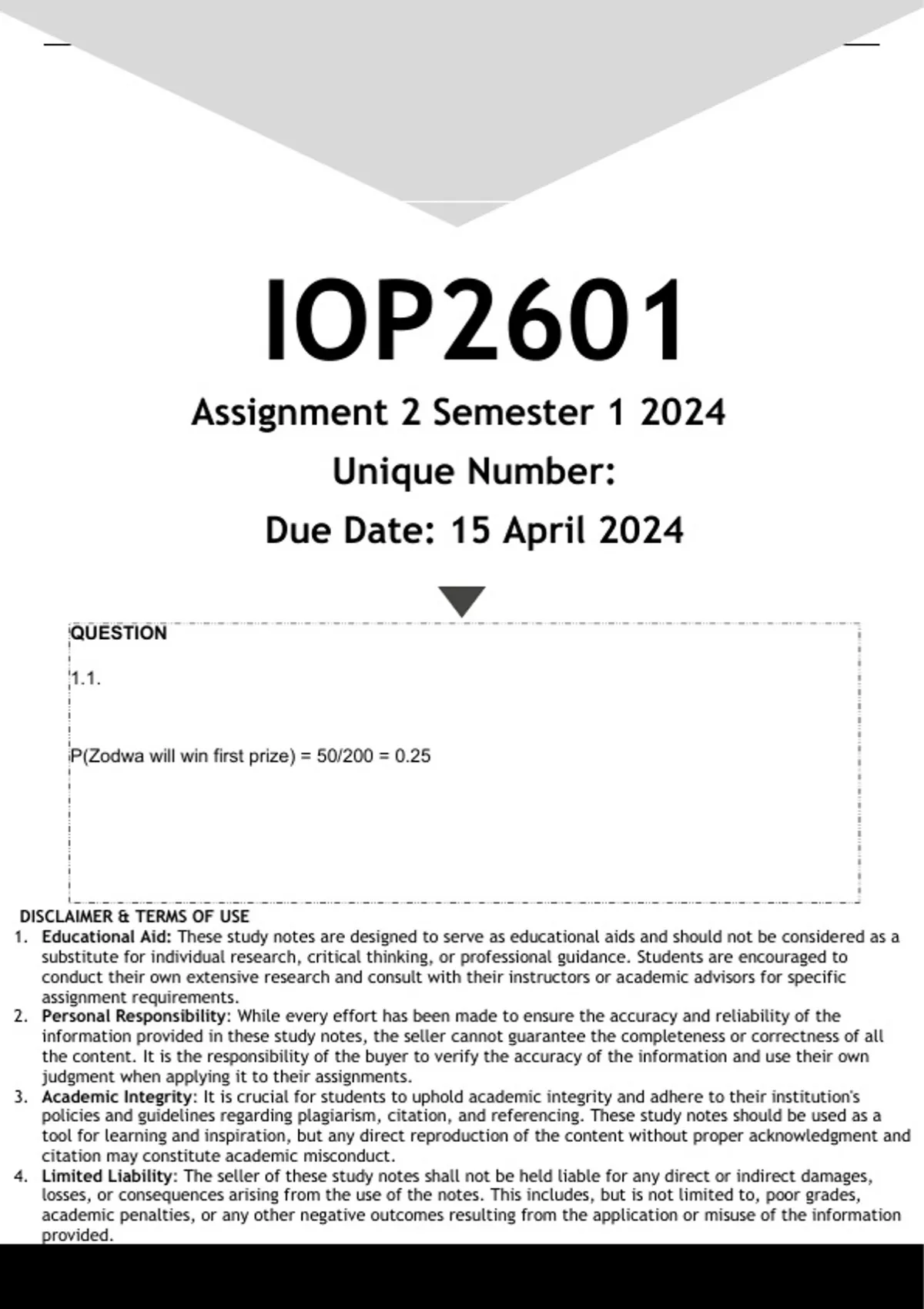 IOP2601 Assignment 2 (ANSWERS) Semester 1 2024 - DISTINCTION GUARANTEED.