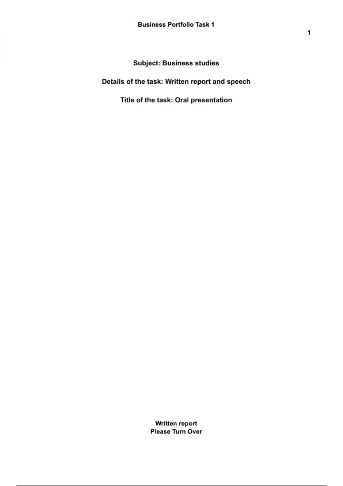 Details of the task: Written report and speech