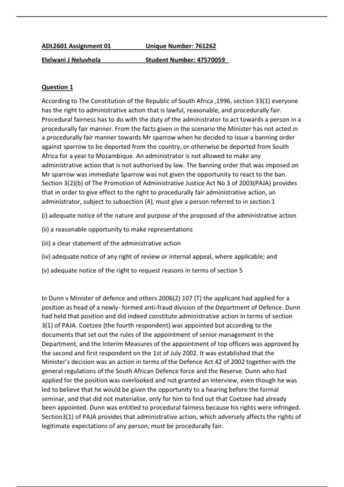 ADL2601 Assignment 01 Unique Number: 761262