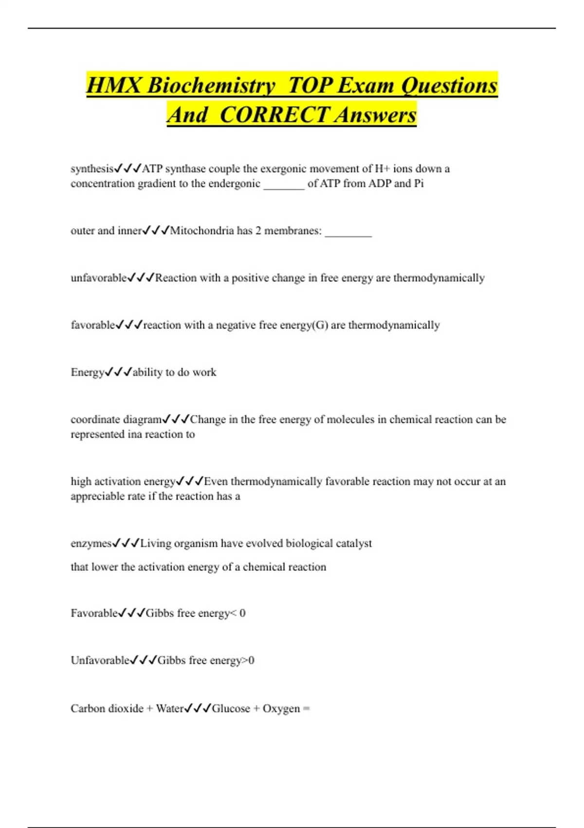 HMX Biochemistry TOP Exam Questions And CORRECT Answers
