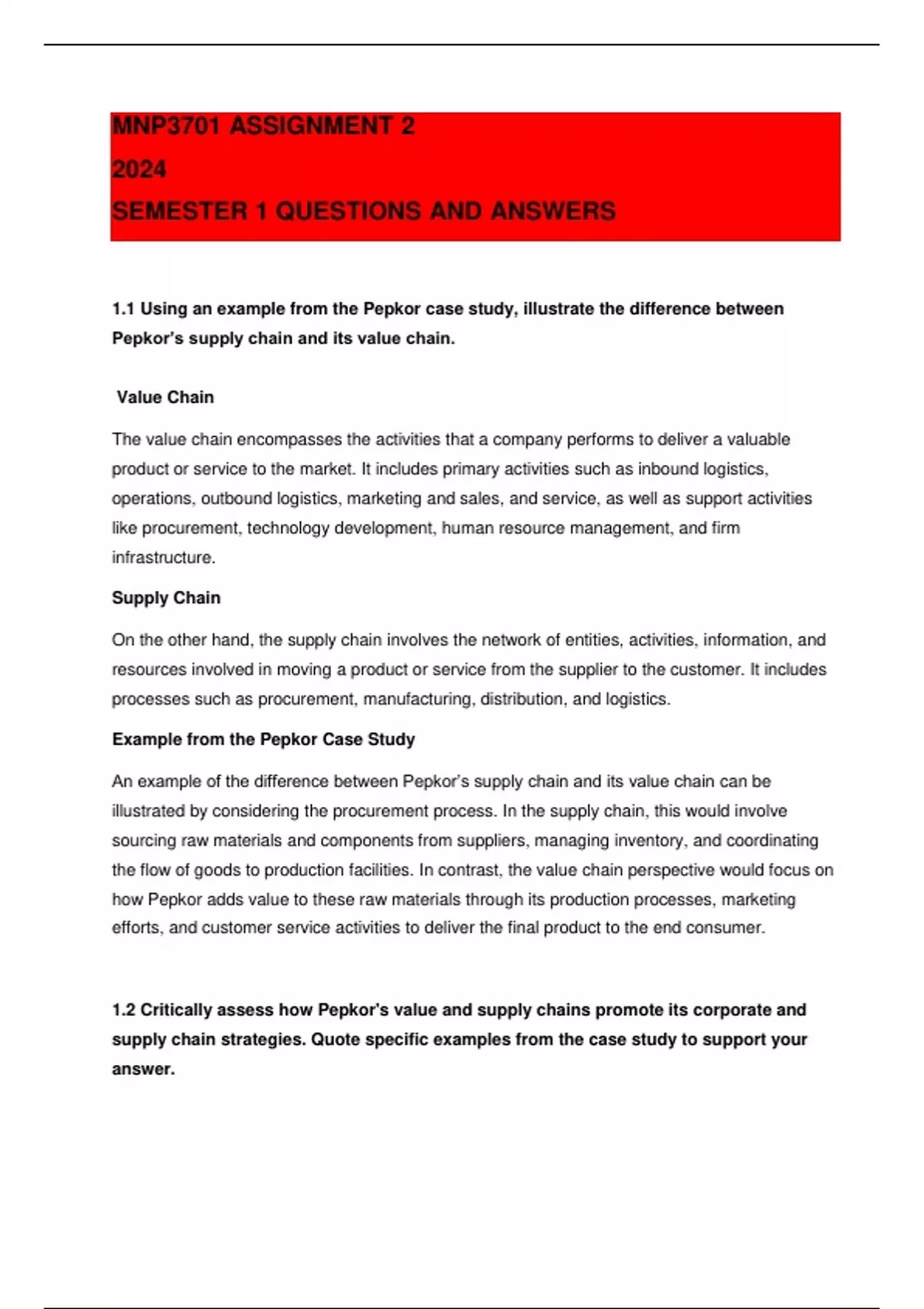 1.2 Critically assess how Pepkor's value and supply chains promote its corporate and