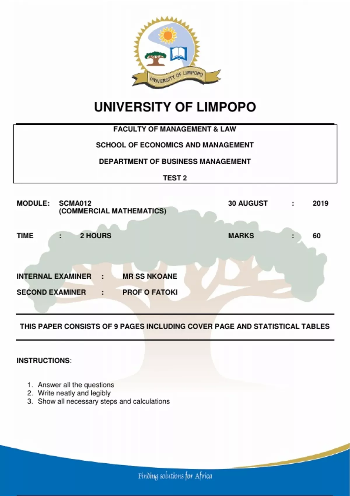 THIS PAPER CONSISTS OF 9 PAGES INCLUDING COVER PAGE AND STATISTICAL TABLES