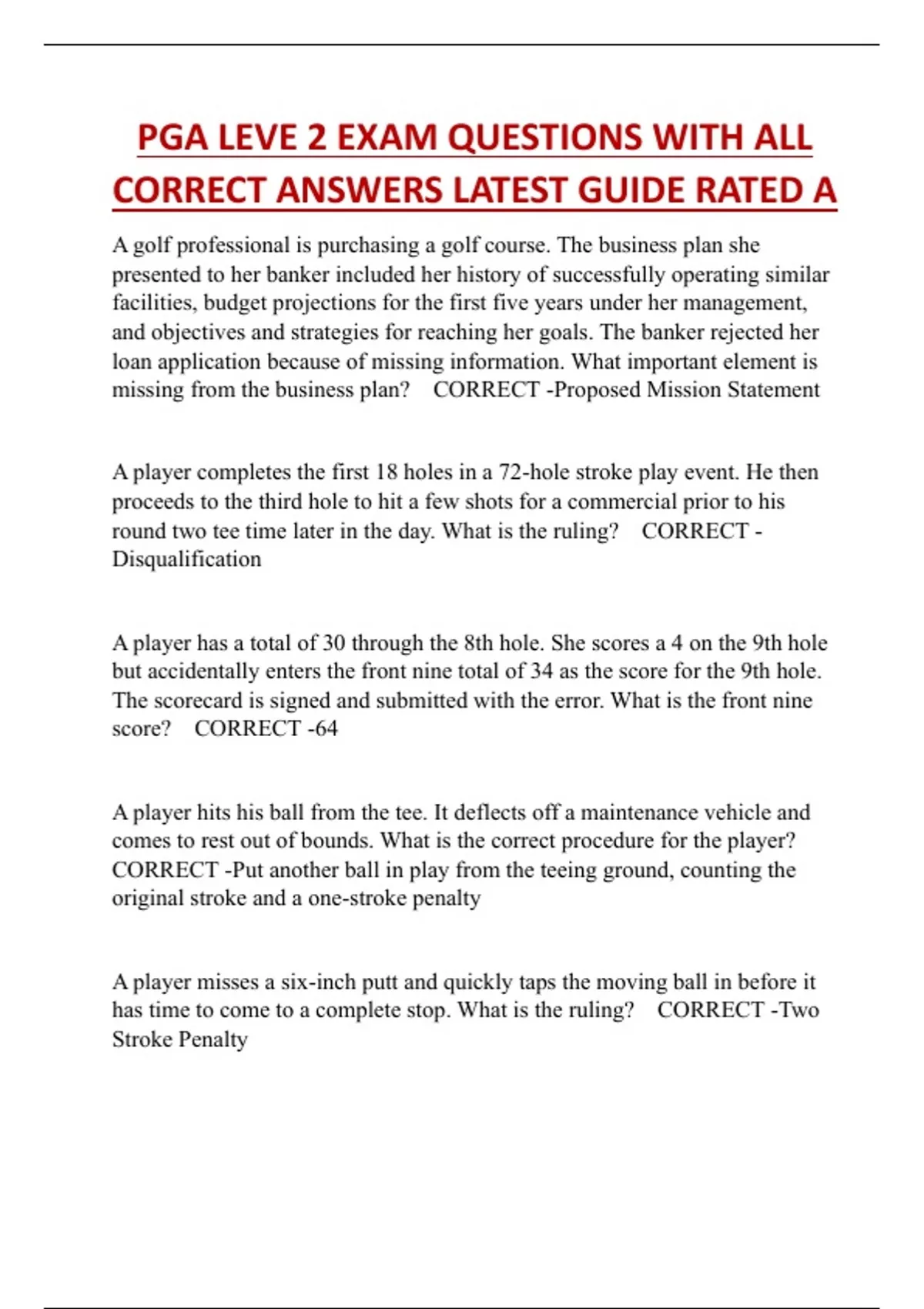 PGA LEVEL 2 EXAM QUESTIONS WITH ALL CORRECT ANSWERS LATEST GUIDE RATED