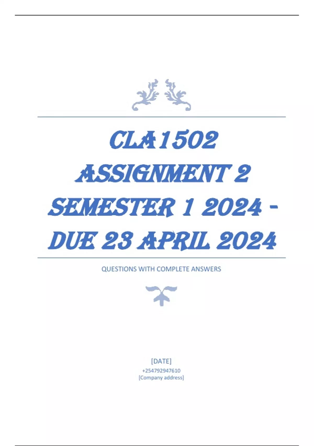 CLA1502 Assignment 2 Semester 1 2024 - DUE 23 April 2024