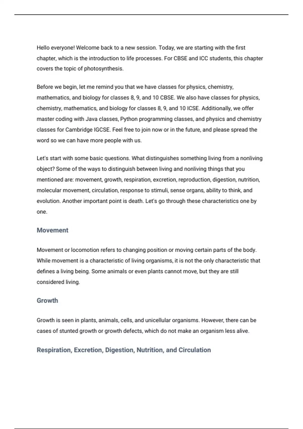 chapter, which is the introduction to life processes. For CBSE and ICC students, this chapter