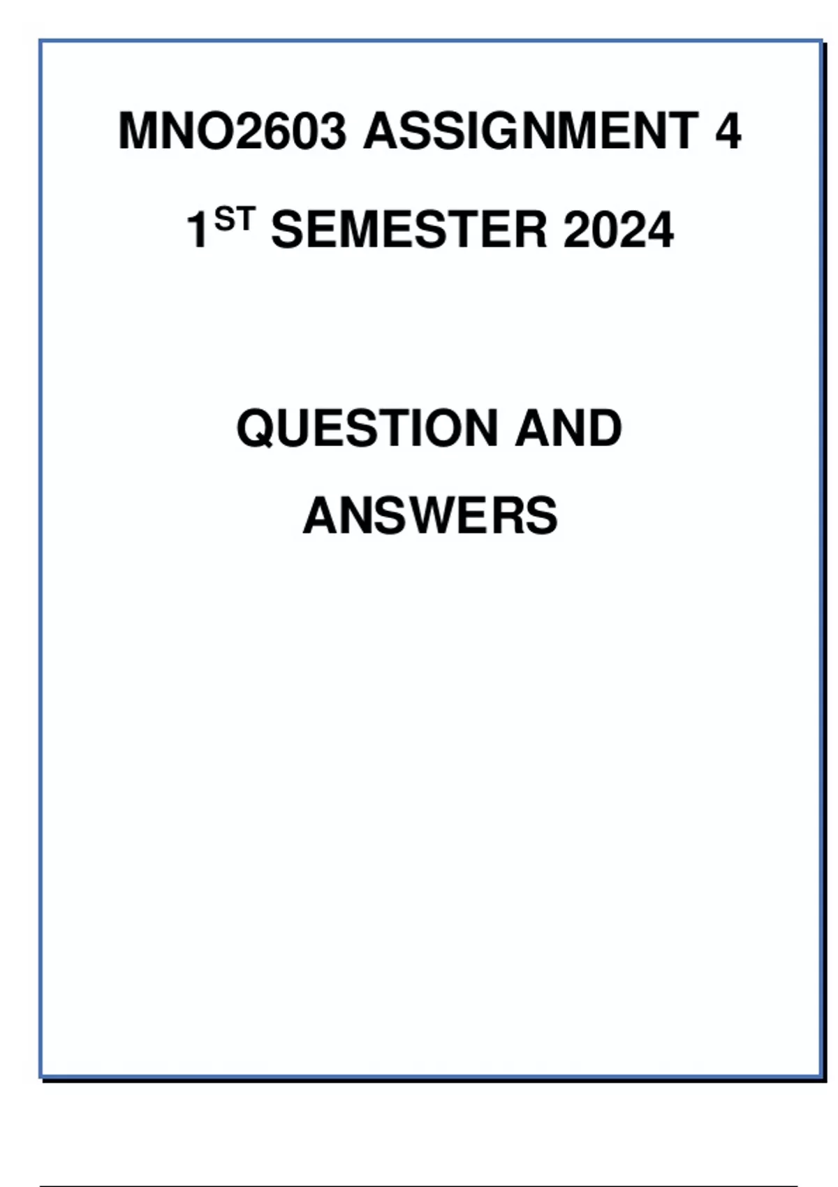 Answers for MNO2603 Assignment 4 semester 1 2024 Assignment due 8 May 2024