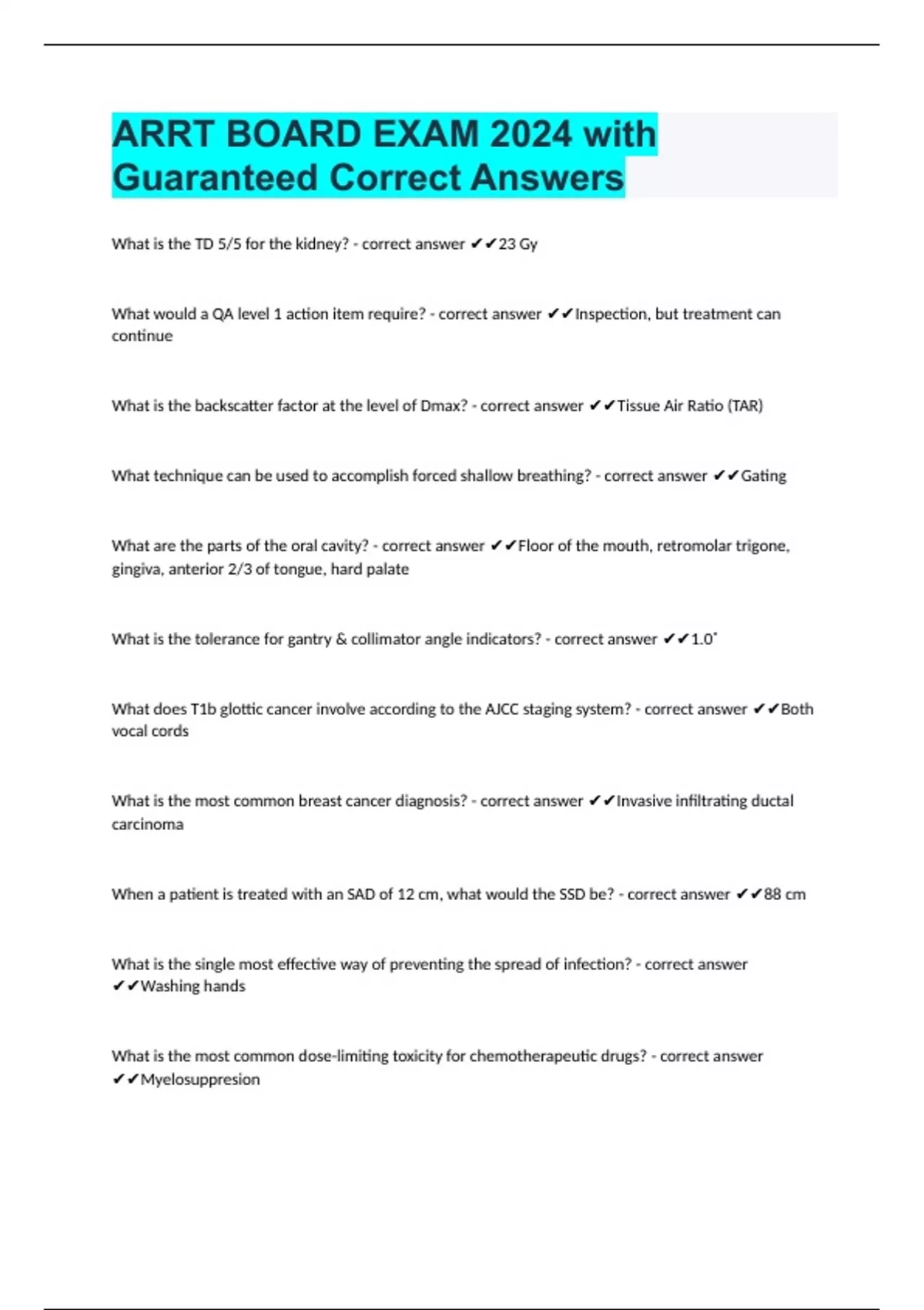 ARRT BOARD EXAM 2024 with Guaranteed Correct Answers
