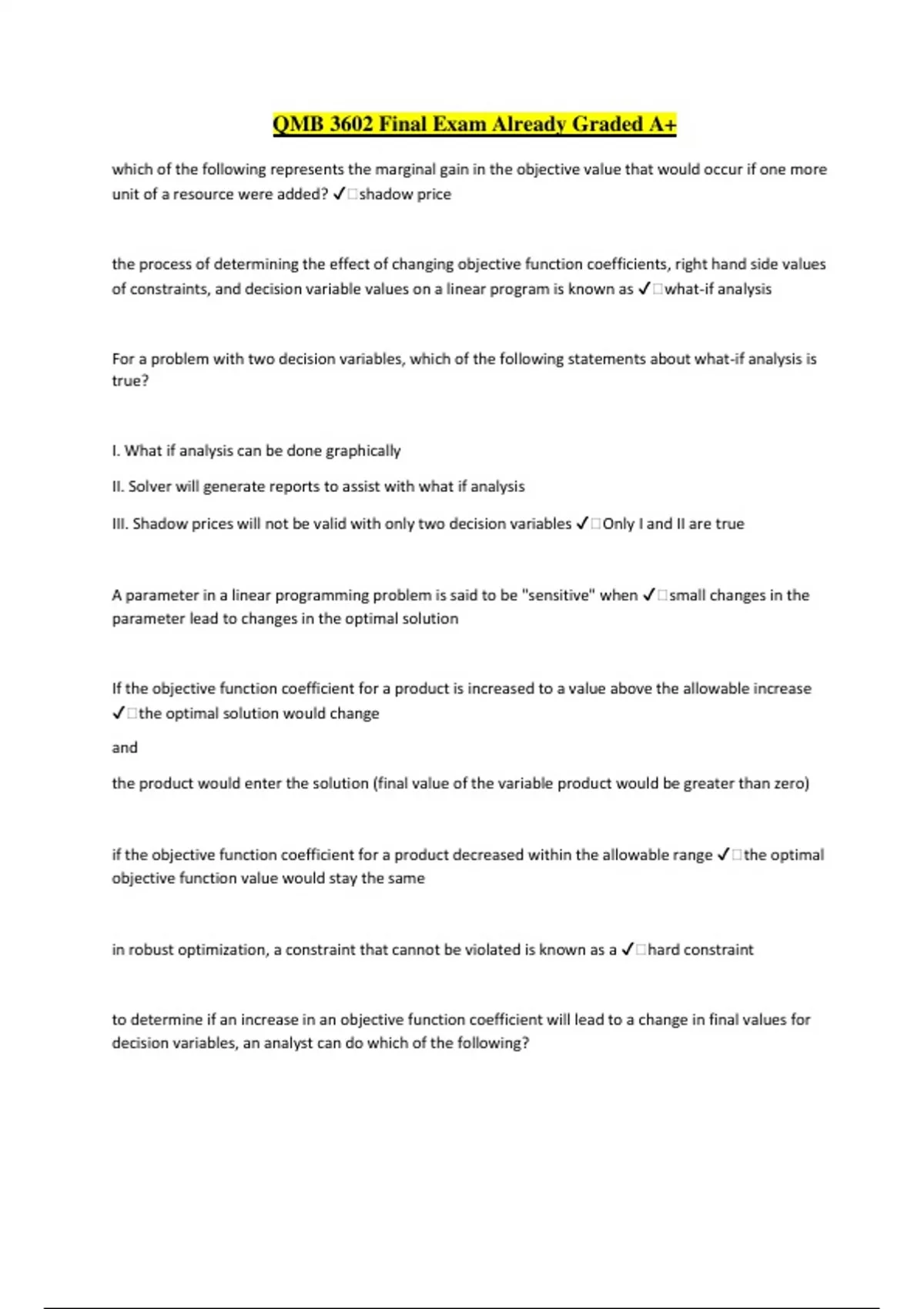 of constraints, and decision variable values on a linear program is known as ✔️what-if analysis