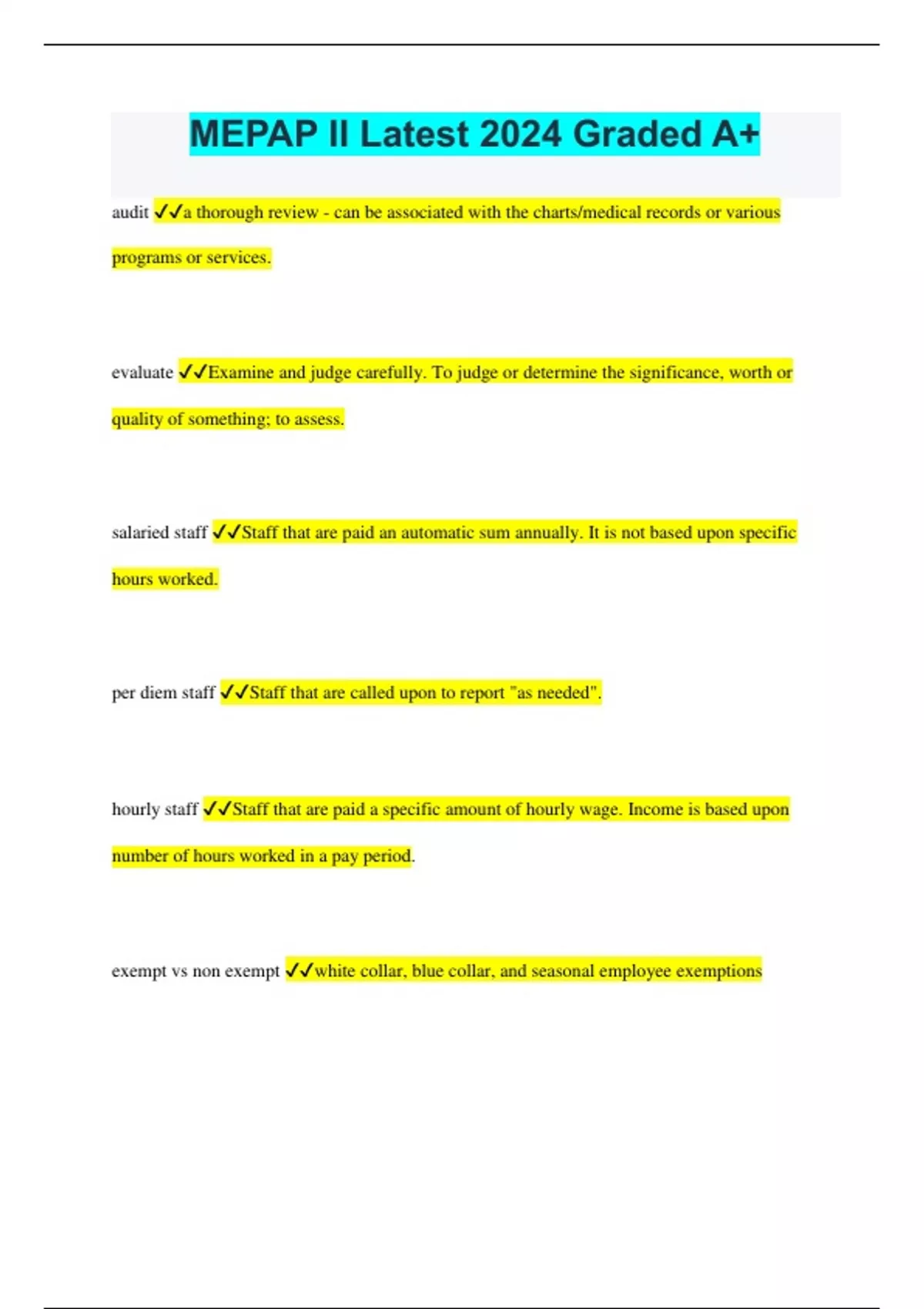 MEPAP II Latest 2024 Graded A+