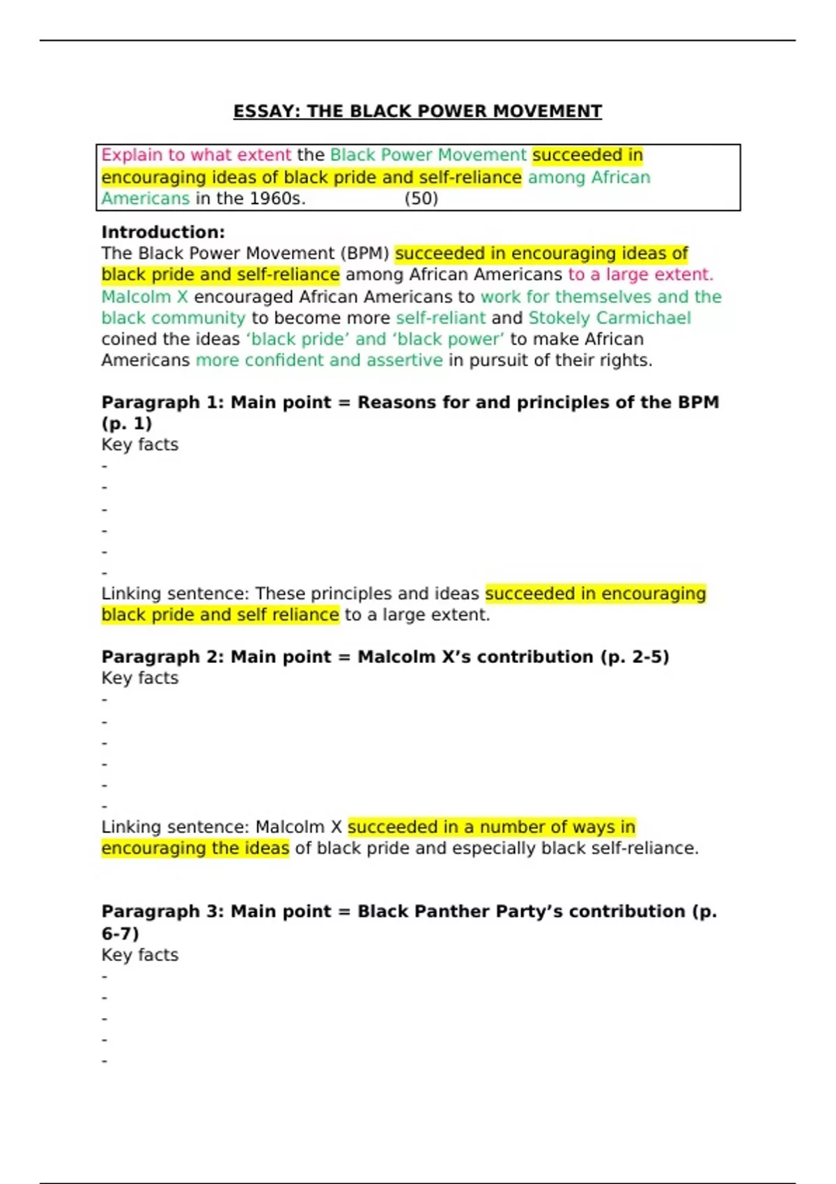 Paragraph 3: Main point = Black Panther Party’s contribution (p.