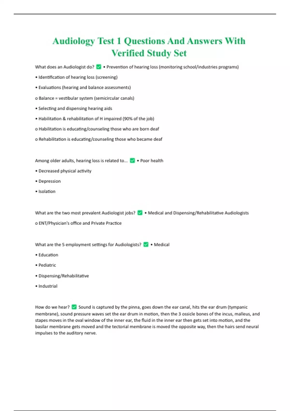 Audiology Test 1 Questions And Answers With Verified Study Set Audiology Test 1 Questions And Answers With Verified Study Set
