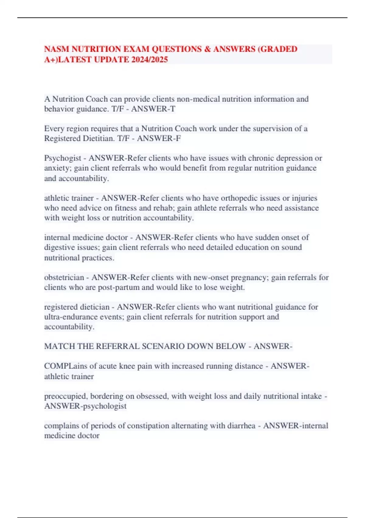 NASM NUTRITION EXAM QUESTIONS & ANSWERS (GRADED A+)LATEST UPDATE 2024/2025