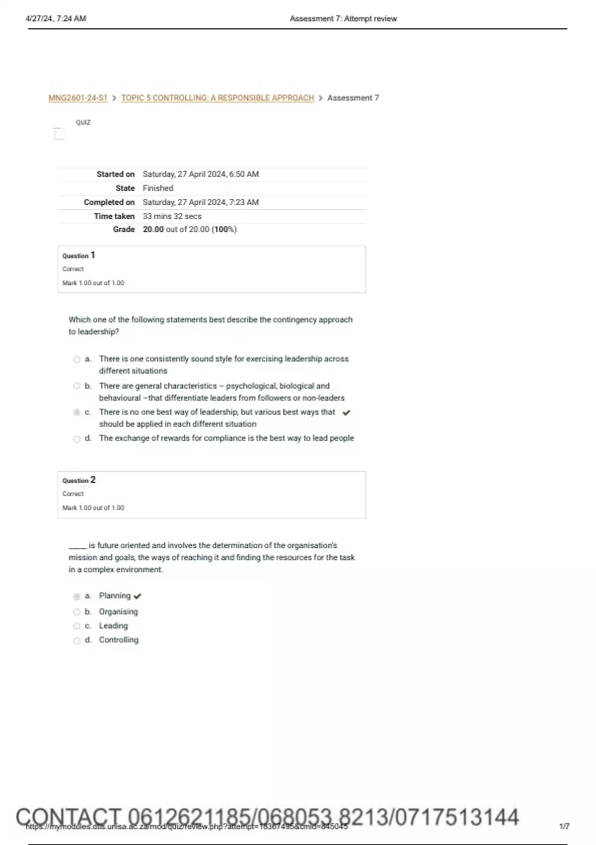 MNG2601-24-S1 TOPIC 5 CONTROLLING: A RESPONSIBLE APPROACH Assessment 7