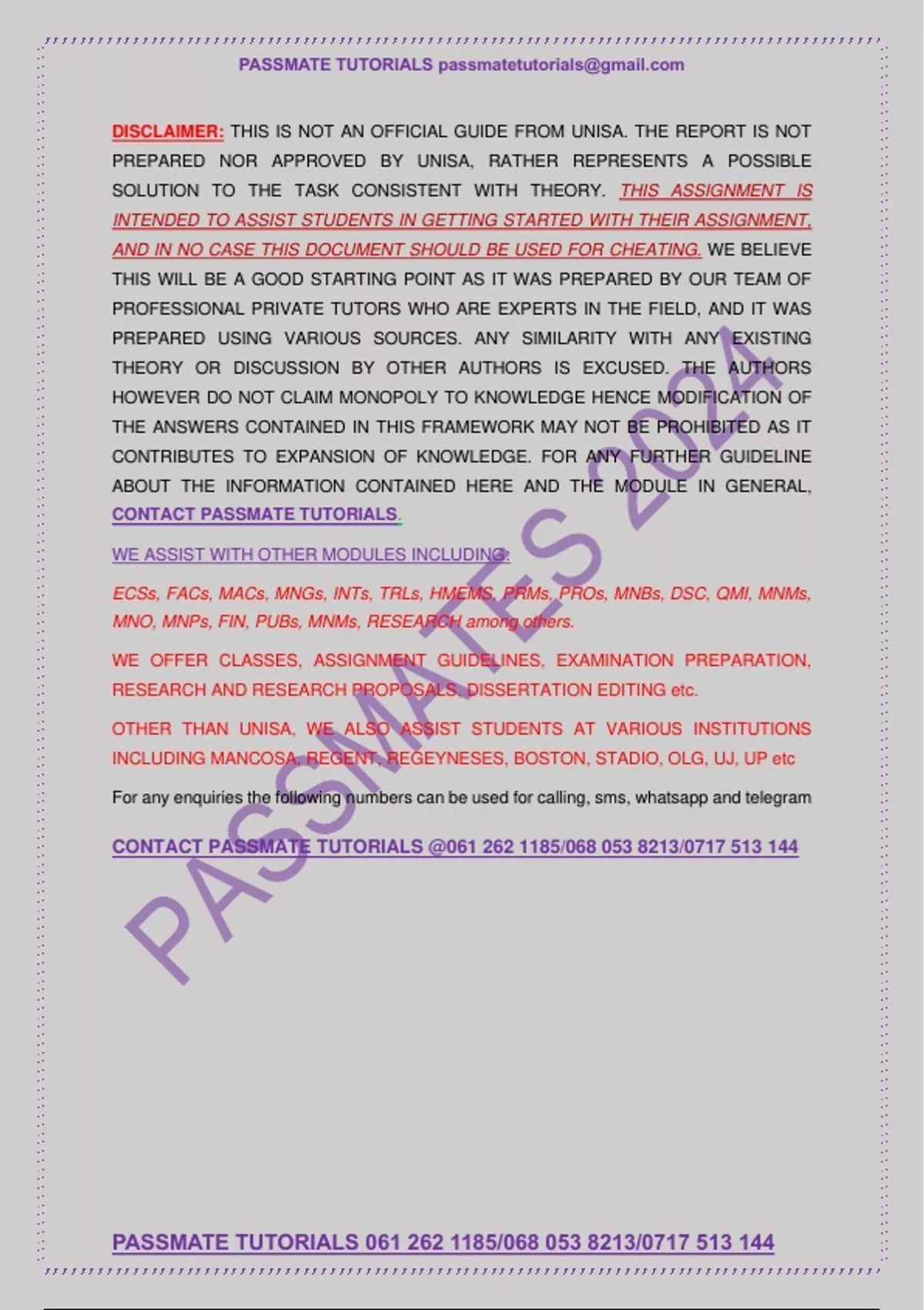 DISCLAIMER: THIS IS NOT AN OFFICIAL GUIDE FROM UNISA. THE REPORT IS NOT