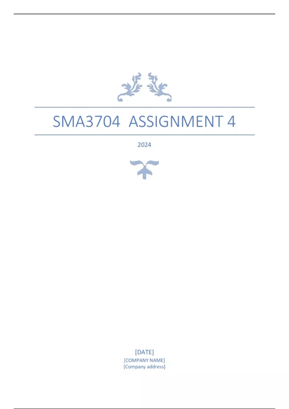 SMA3704 ASSIGNMENT 4 QUIZ SEMESTER 1 ANSWERS 2024