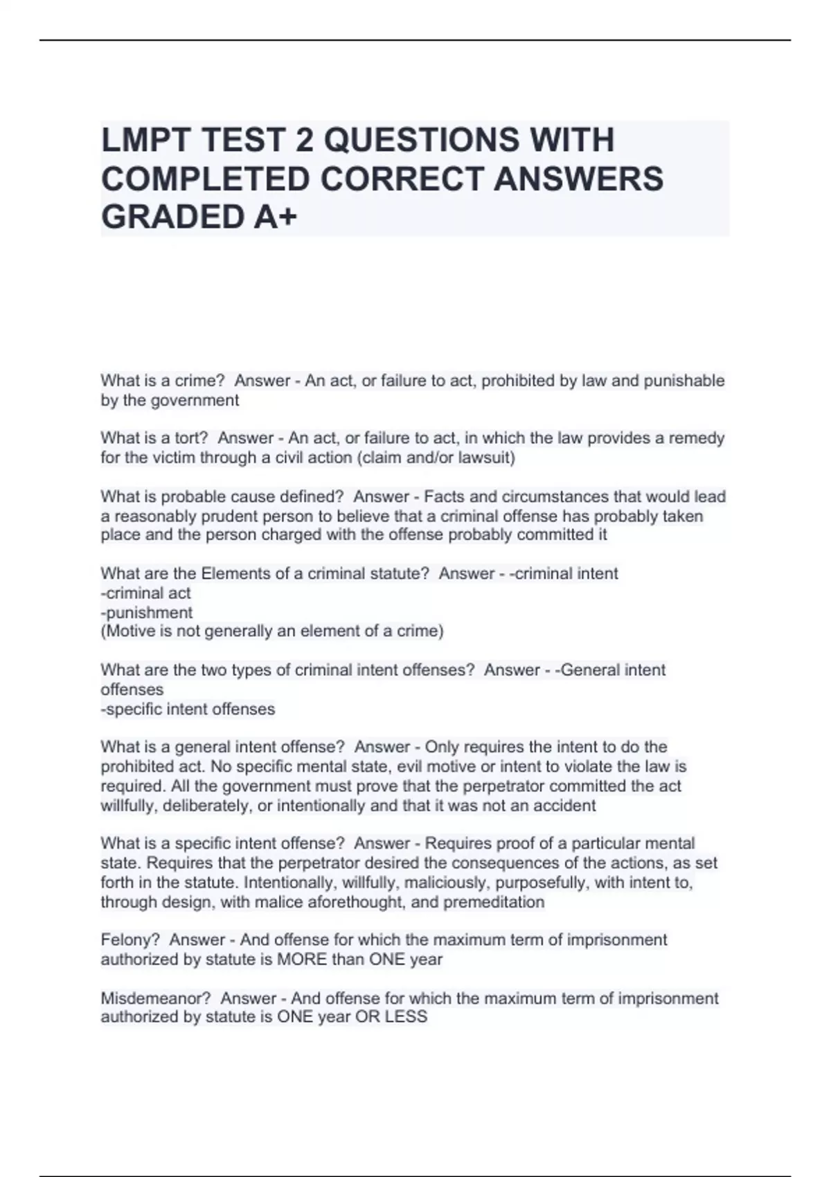 LMPT TEST 2 QUESTIONS WITH COMPLETED CORRECT ANSWERS GRADED A+