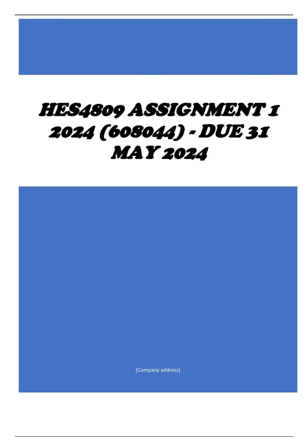 , HES4809 Assignment 1 2024 (608044) - DUE 31 May 2024