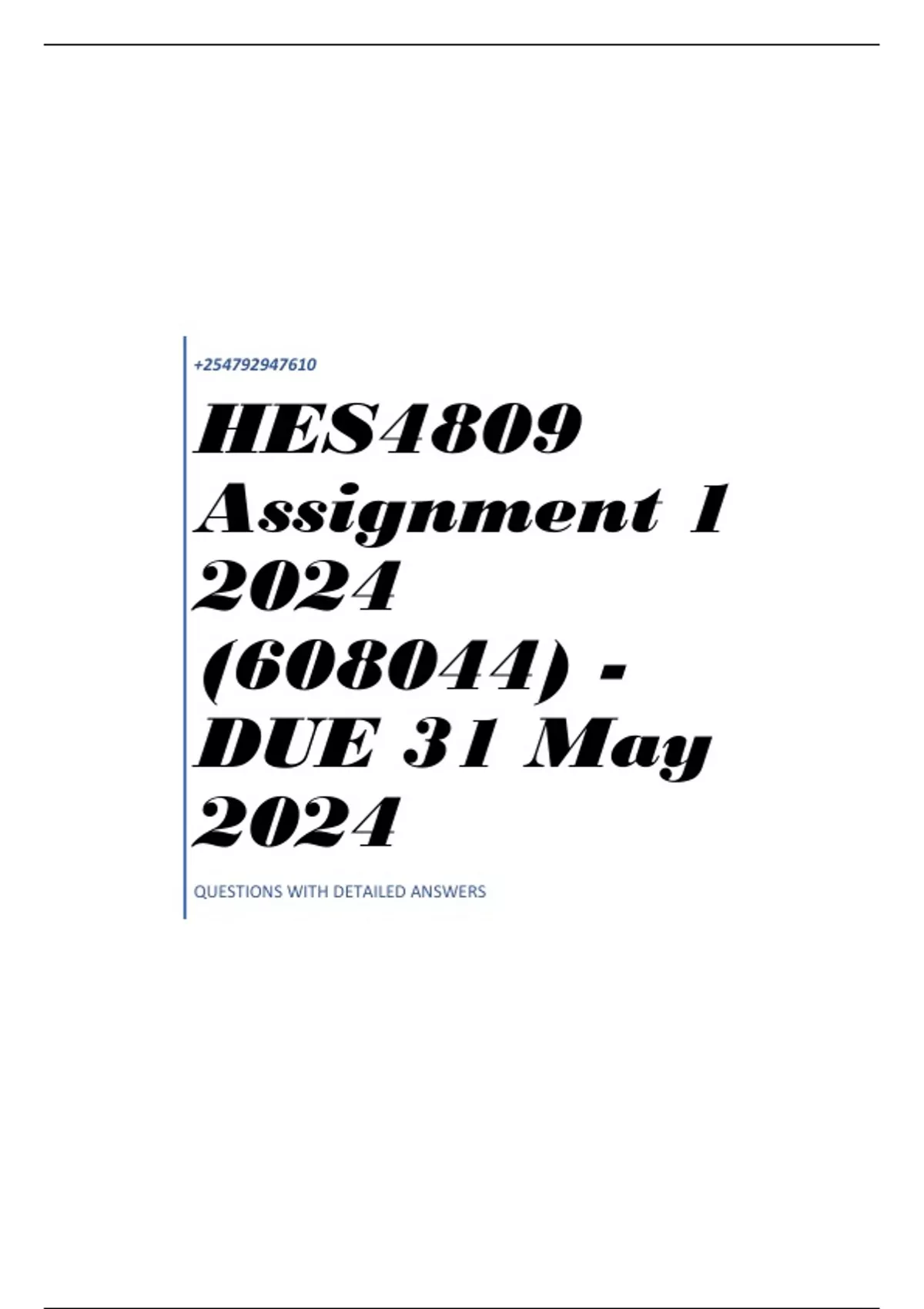 HES4809 Assignment 1 2024 (608044) - DUE 31 May 2024 QUESTIONS AND ANSWERS