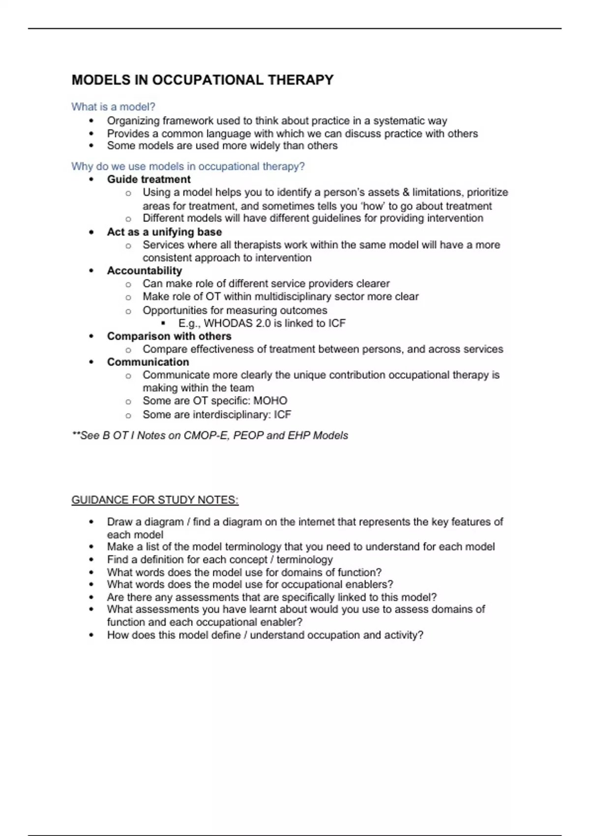 o Using a model helps you to identify a person’s assets & limitations, prioritize