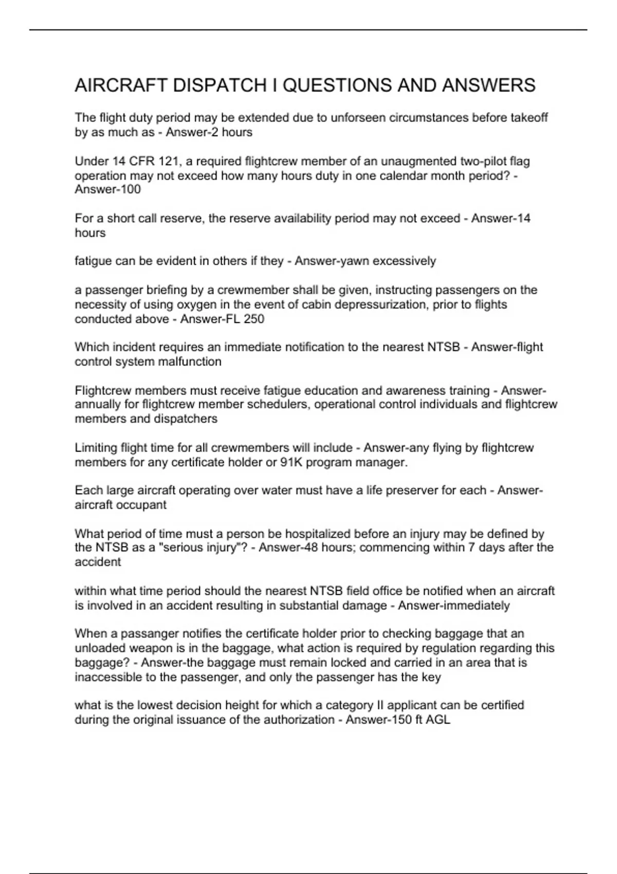 AIRCRAFT DISPATCH I QUESTIONS AND ANSWERS