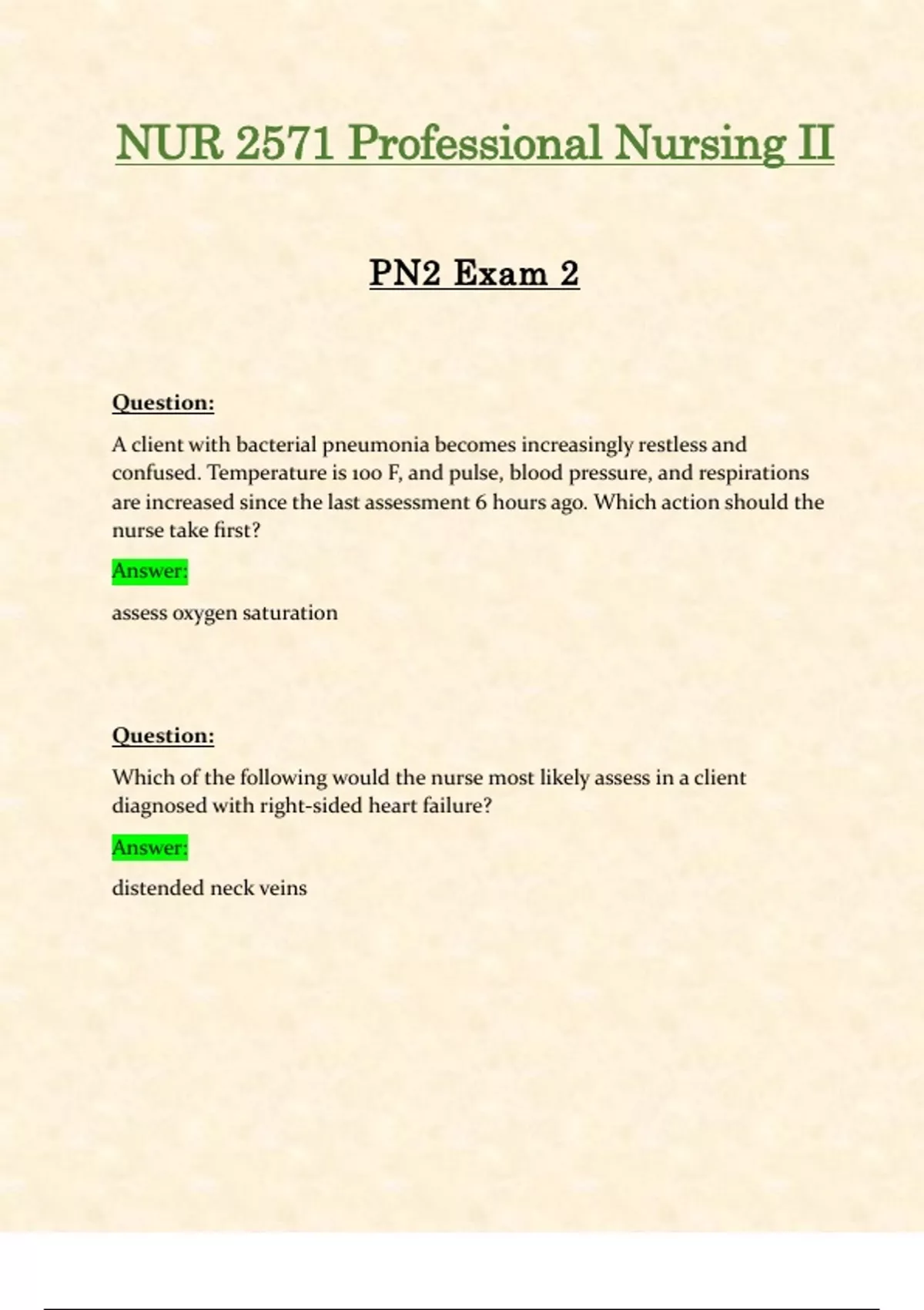 Exam 2 - NUR2571 / NUR 2571 (Latest 2024 / 2025) : Professional Nursing II (PN2) - Rasmussen