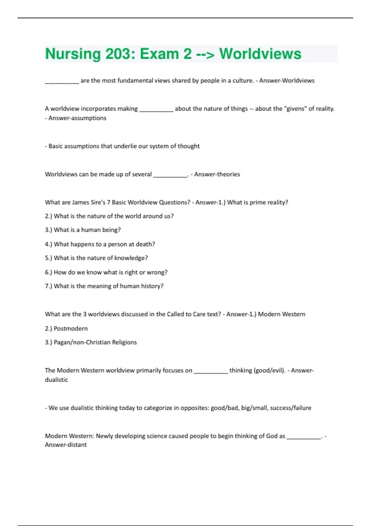 Nursing 203: Exam 2 --> Worldviews Questions and Answers 100% Solved correctly