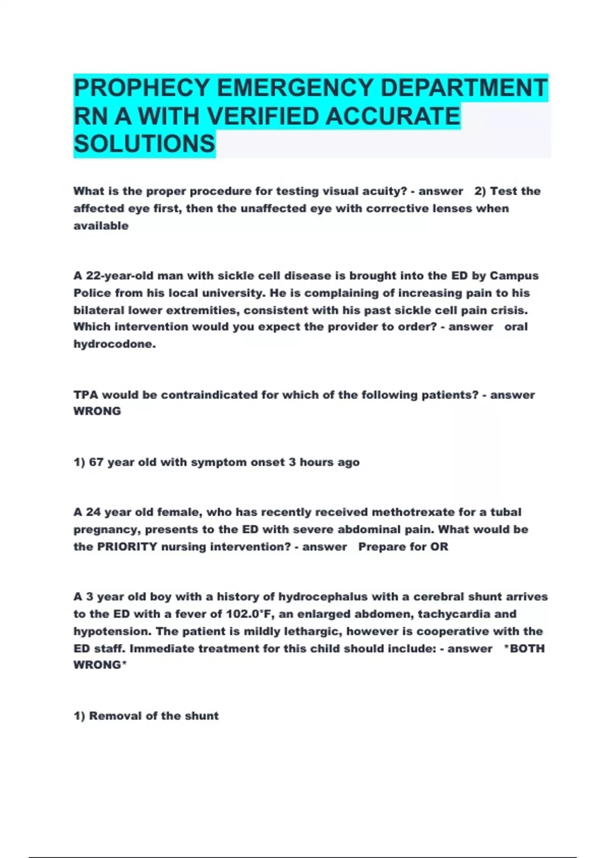 PROPHECY EMERGENCY DEPARTMENT RN A WITH VERIFIED ACCURATE SOLUTIONS